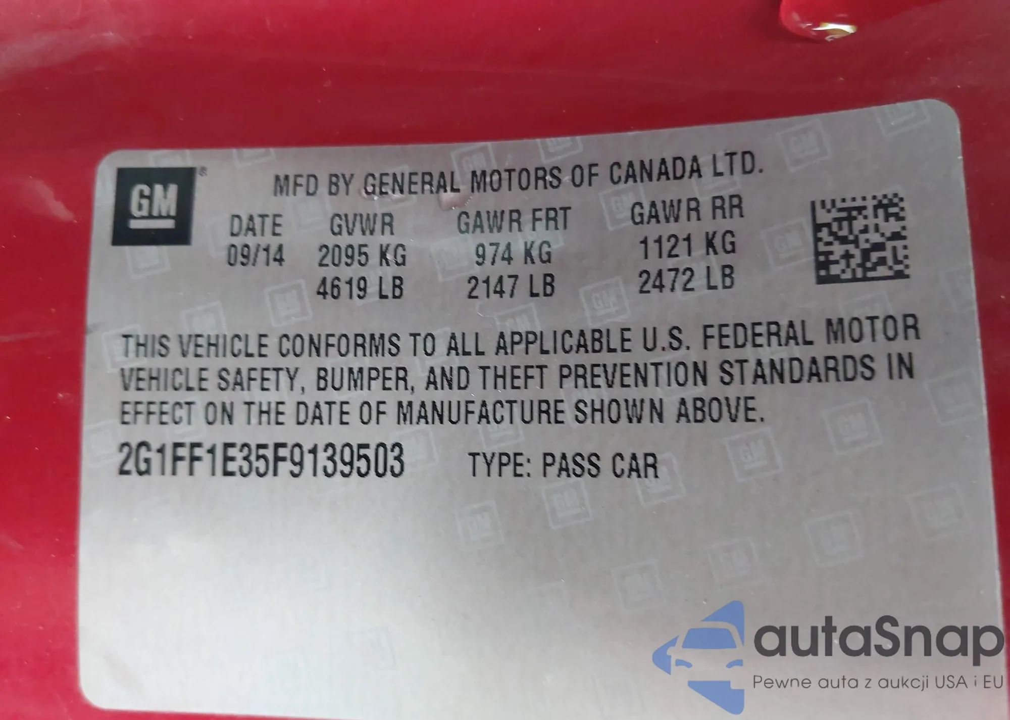 • VIN 2G1FF1E35F9139503