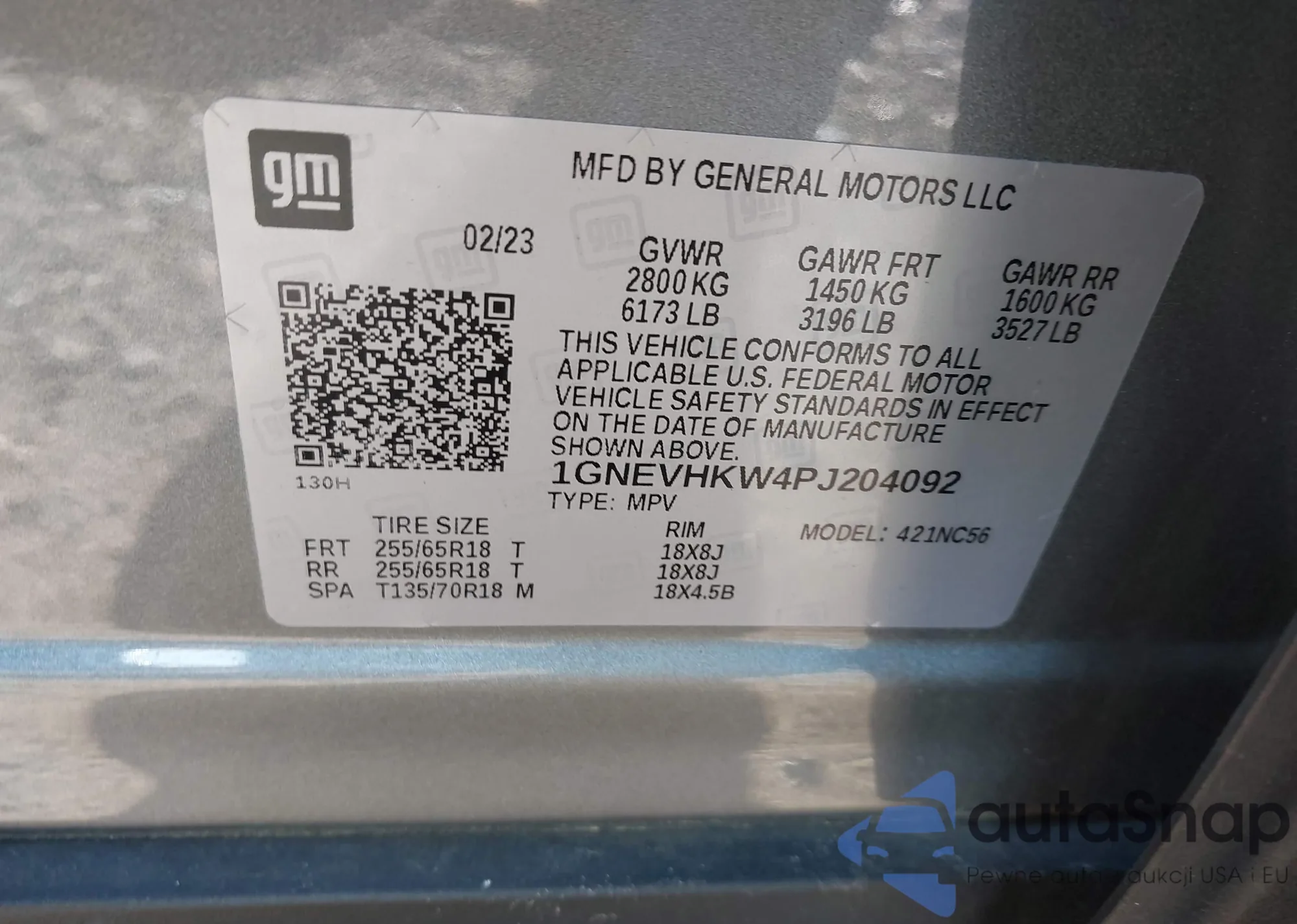 LOT: 43504013 VIN: 1GNEVHKW4PJ204092