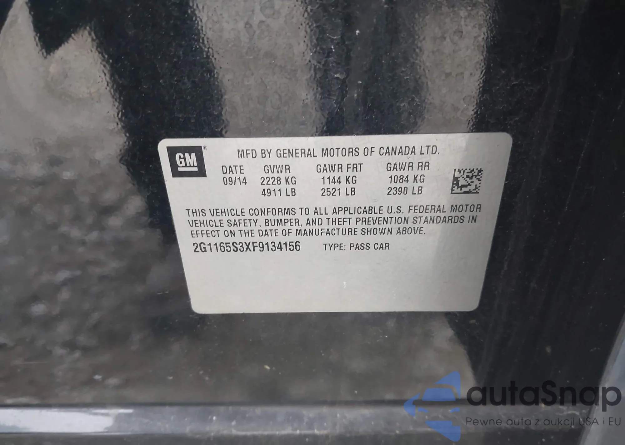 • VIN 2G1165S3XF9134156