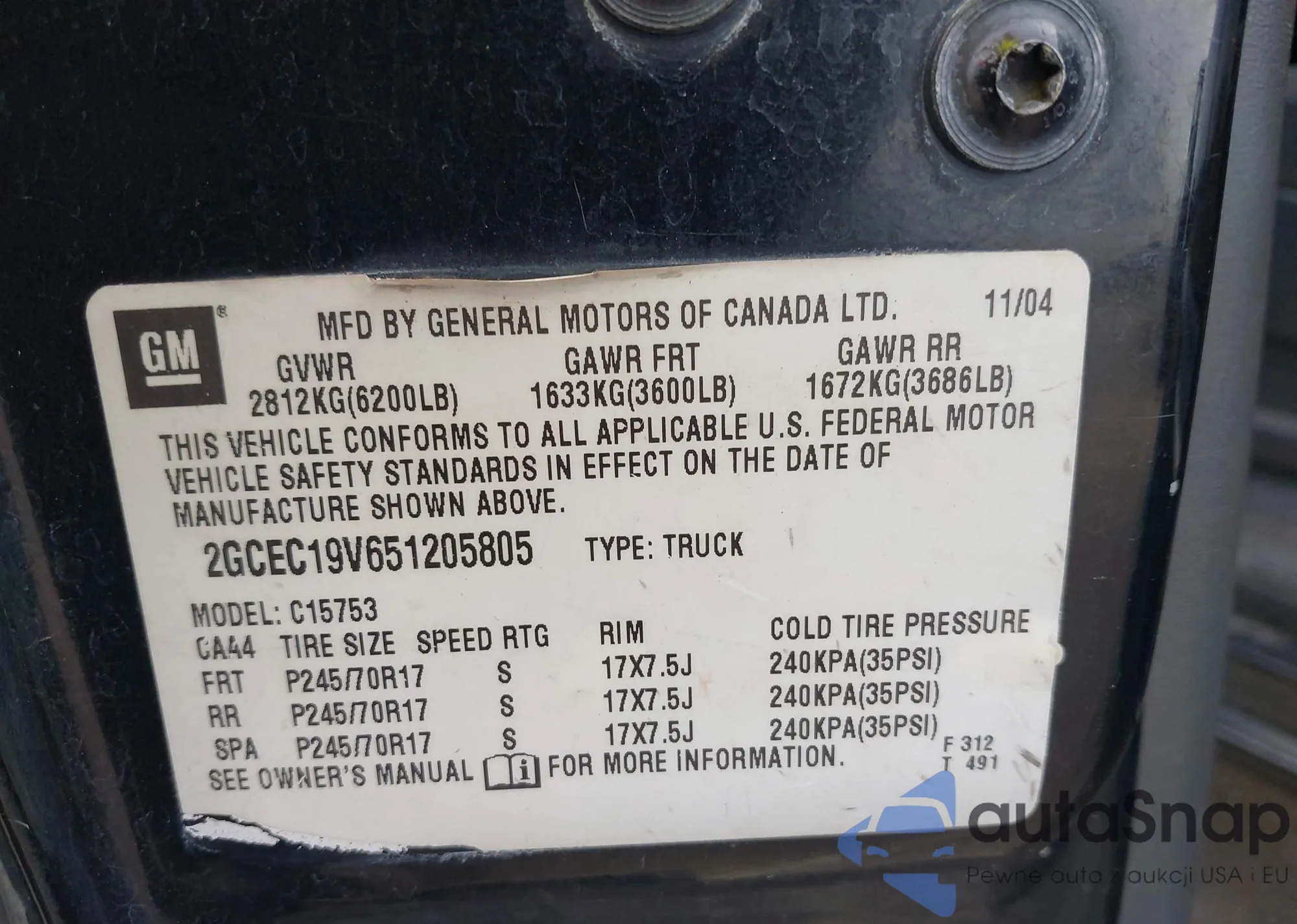 • VIN 2GCEC19V651205805
