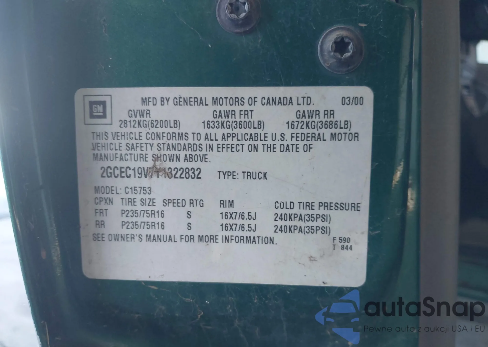 • VIN 2GCEC19V7Y1322832