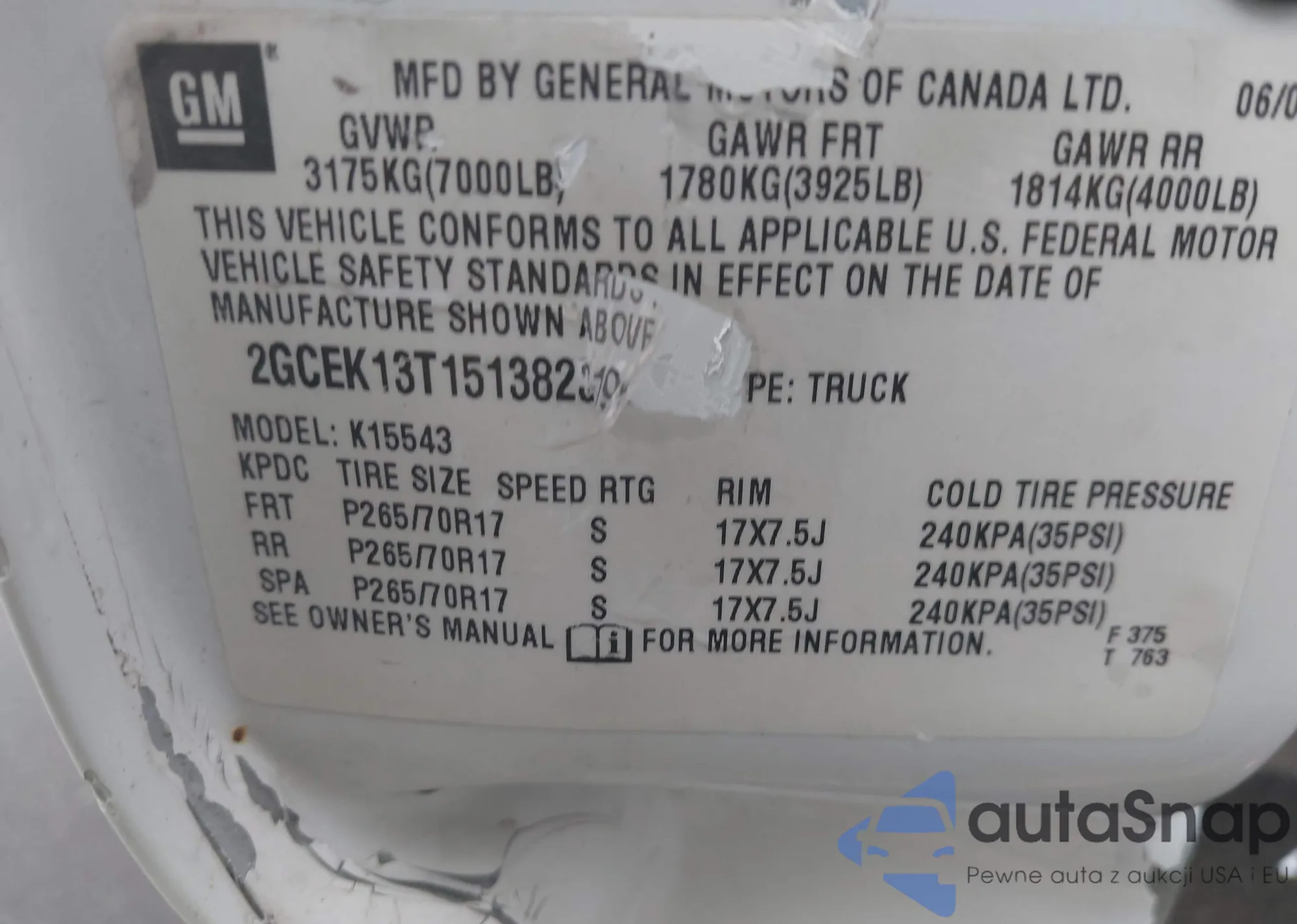 • VIN 2GCEK13T151382319
