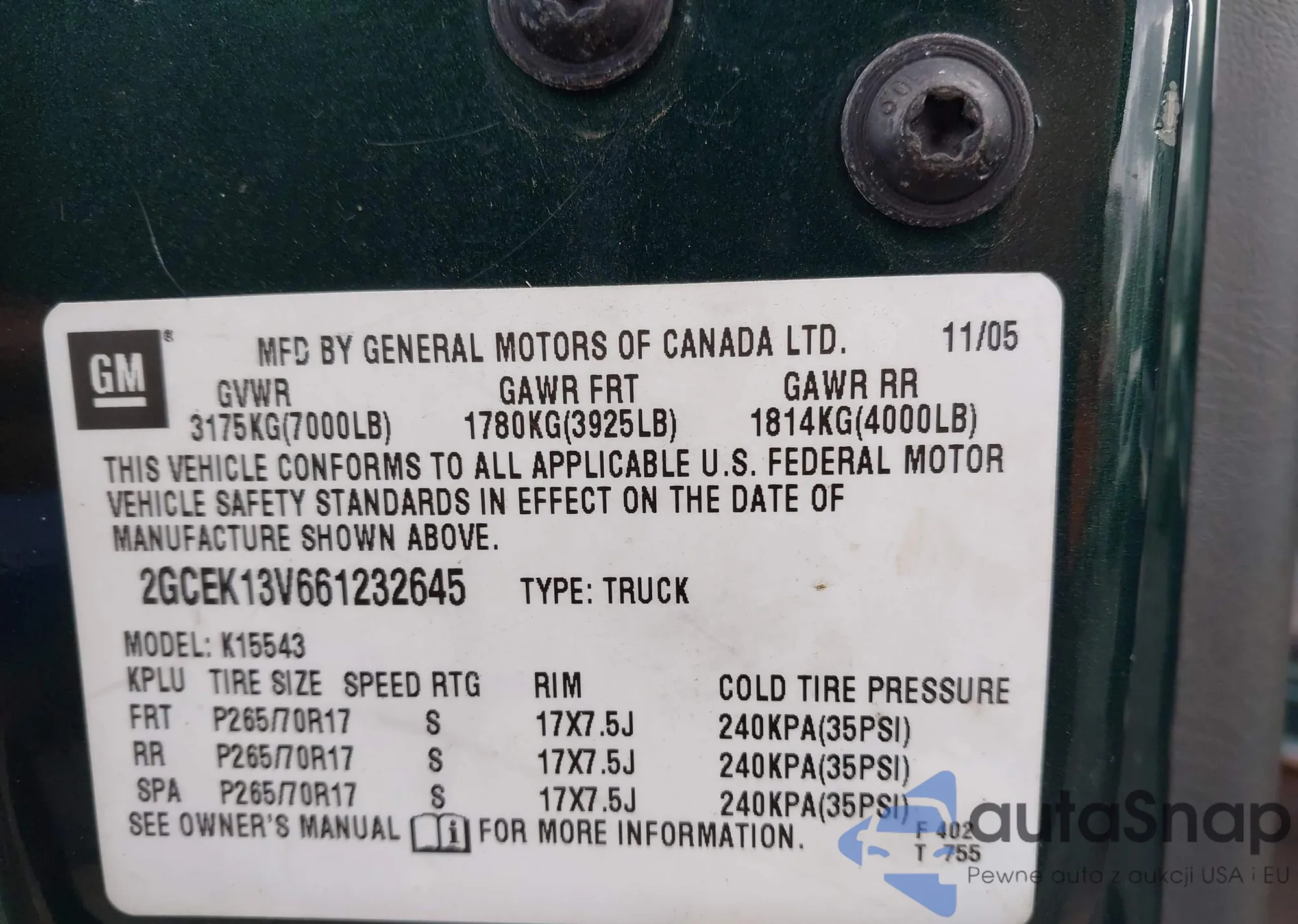 • VIN 2GCEK13V661232645