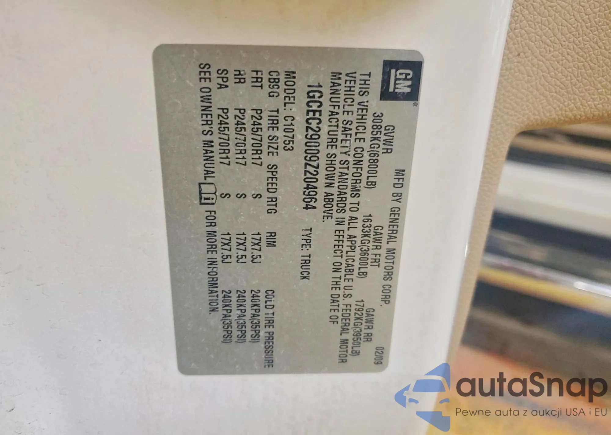 LOT: 74354825 VIN: 1GCEC29009Z204964