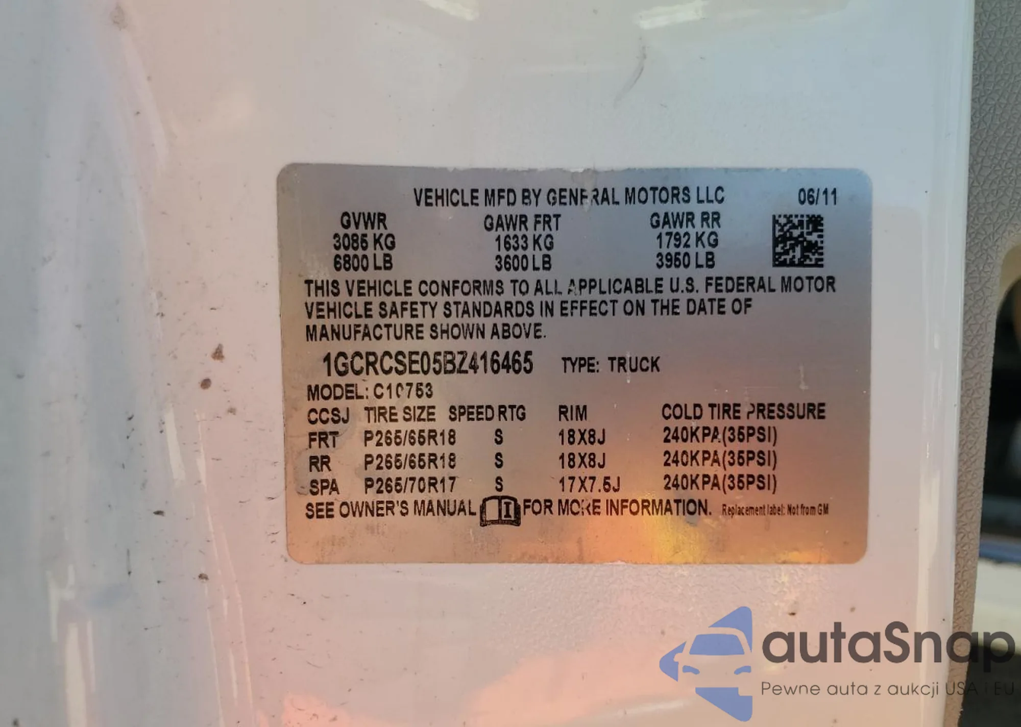 • VIN 1GCRCSE05BZ416465