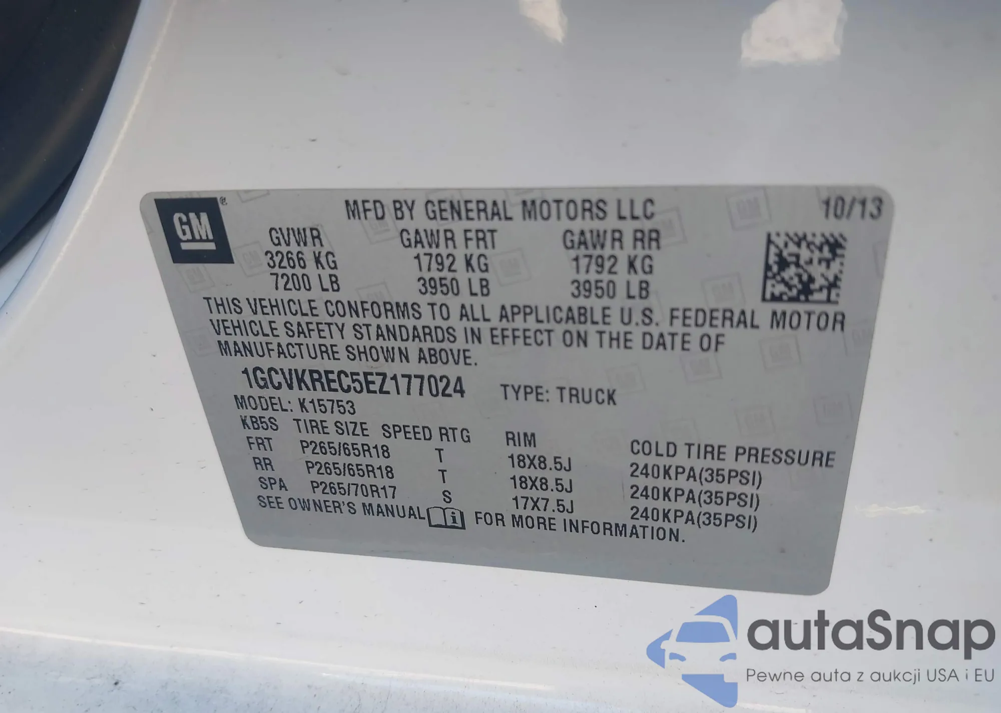 LOT: 43951964 VIN: 1GCVKREC5EZ177024