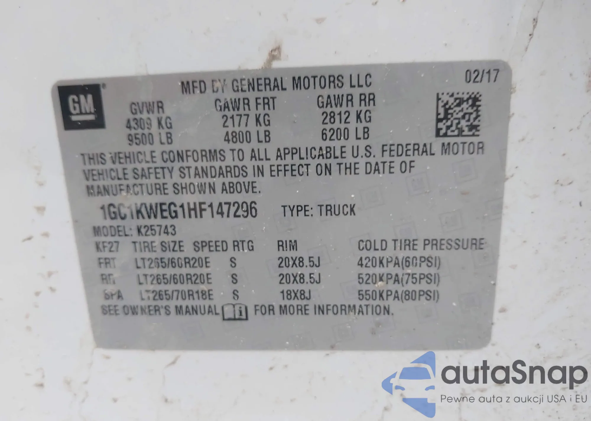 • VIN 1GC1KWEG1HF147296