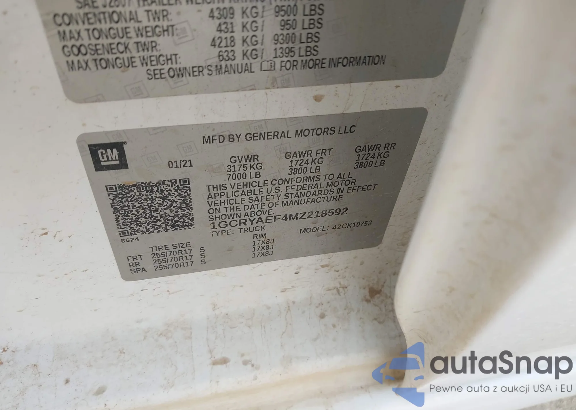 LOT: 44518455 VIN: 1GCRYAEFXMZ218676