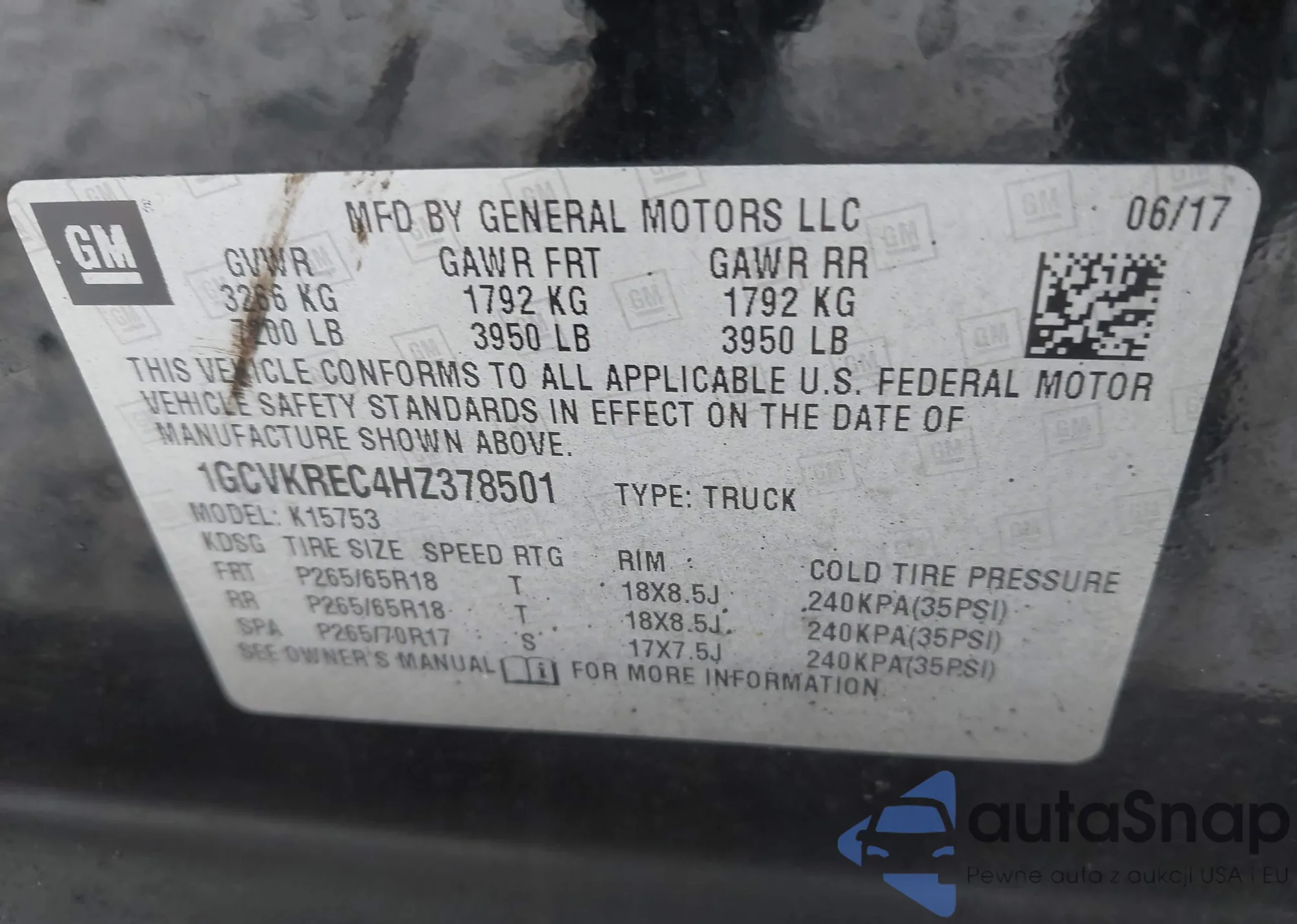 • VIN 1GCVKREC4HZ378501