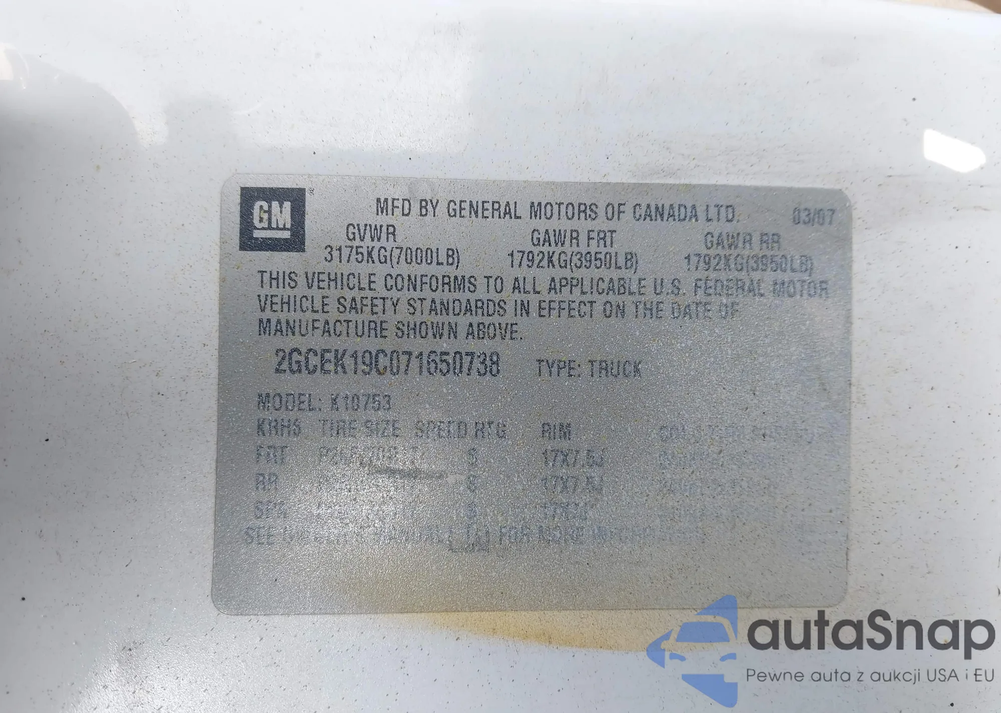 • VIN 2GCEK19C071650738
