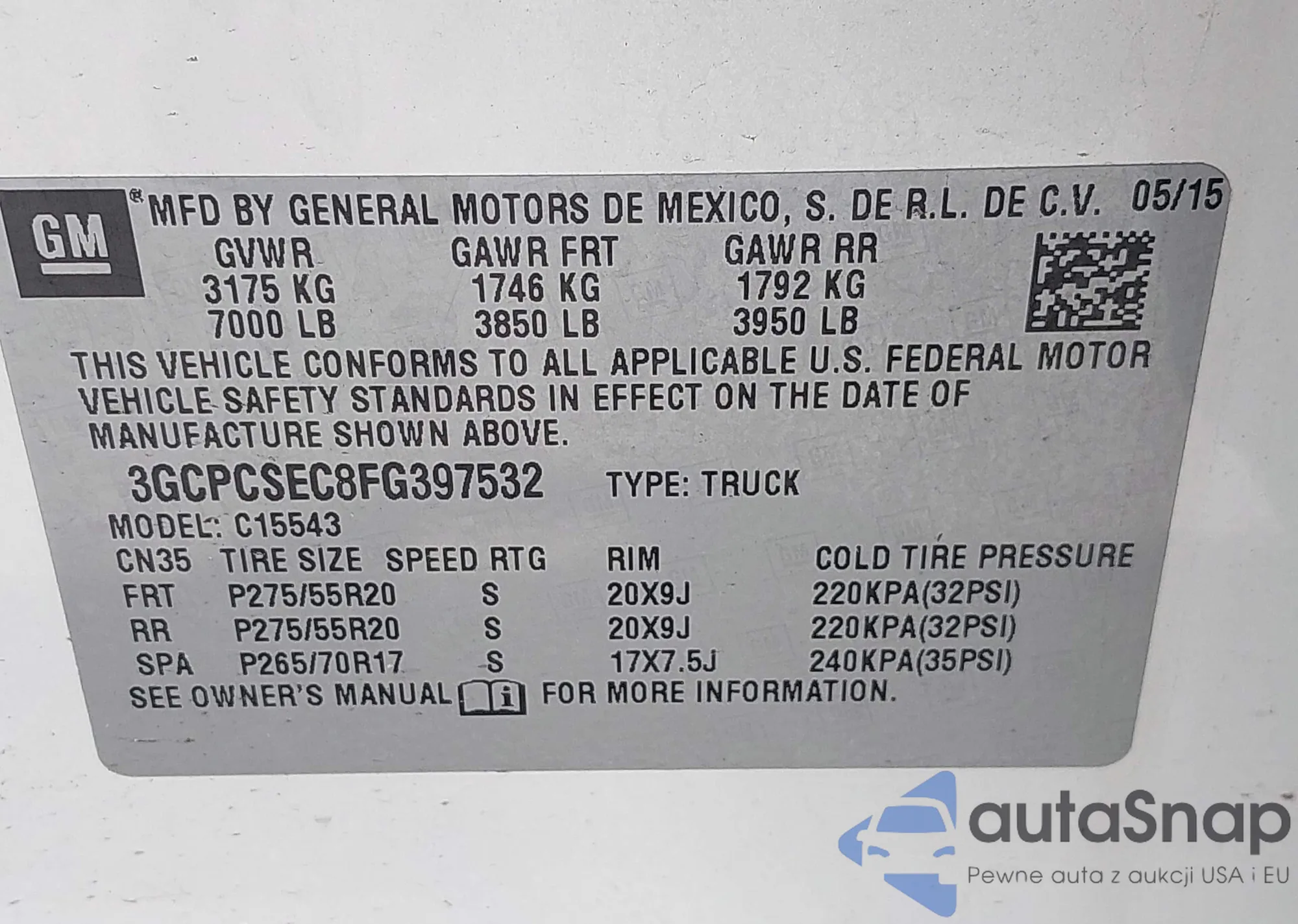 • VIN 3GCPCSEC8FG397532