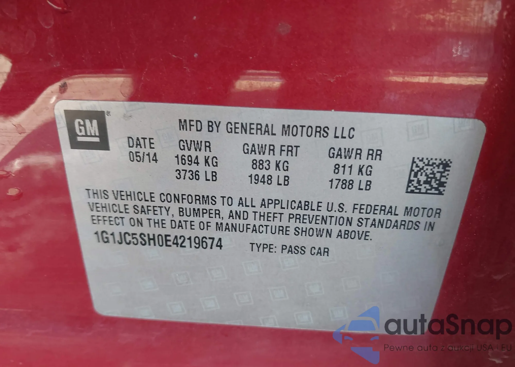 LOT: 41121675 VIN: 1G1JC5SH0E4219674