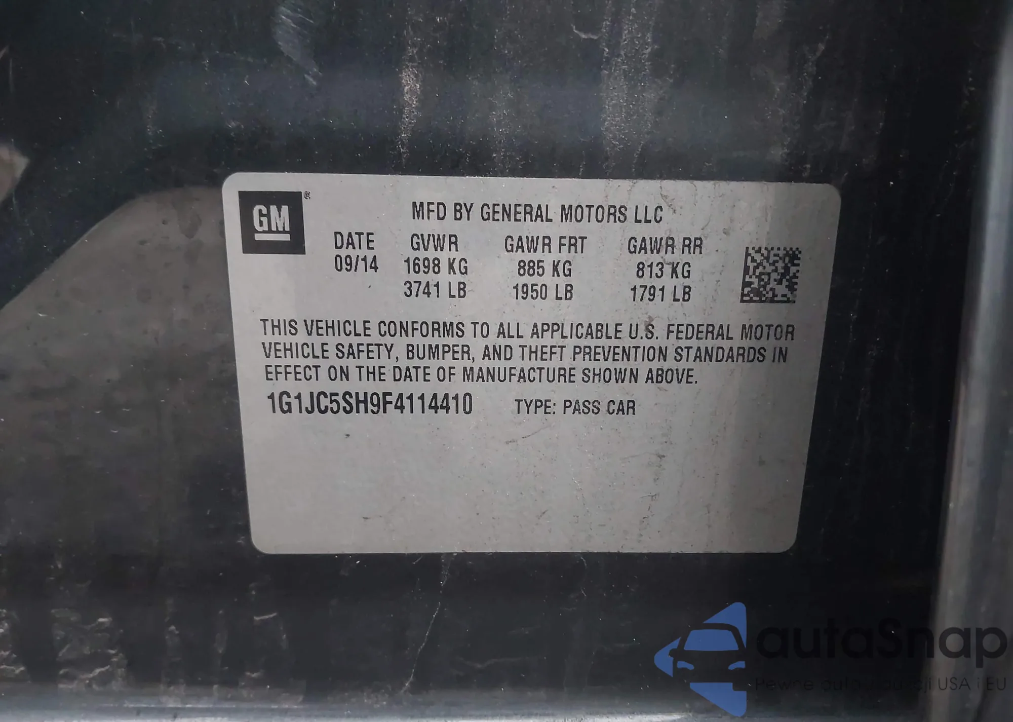 LOT: 44110768 VIN: 1G1JC5SH9F4114410