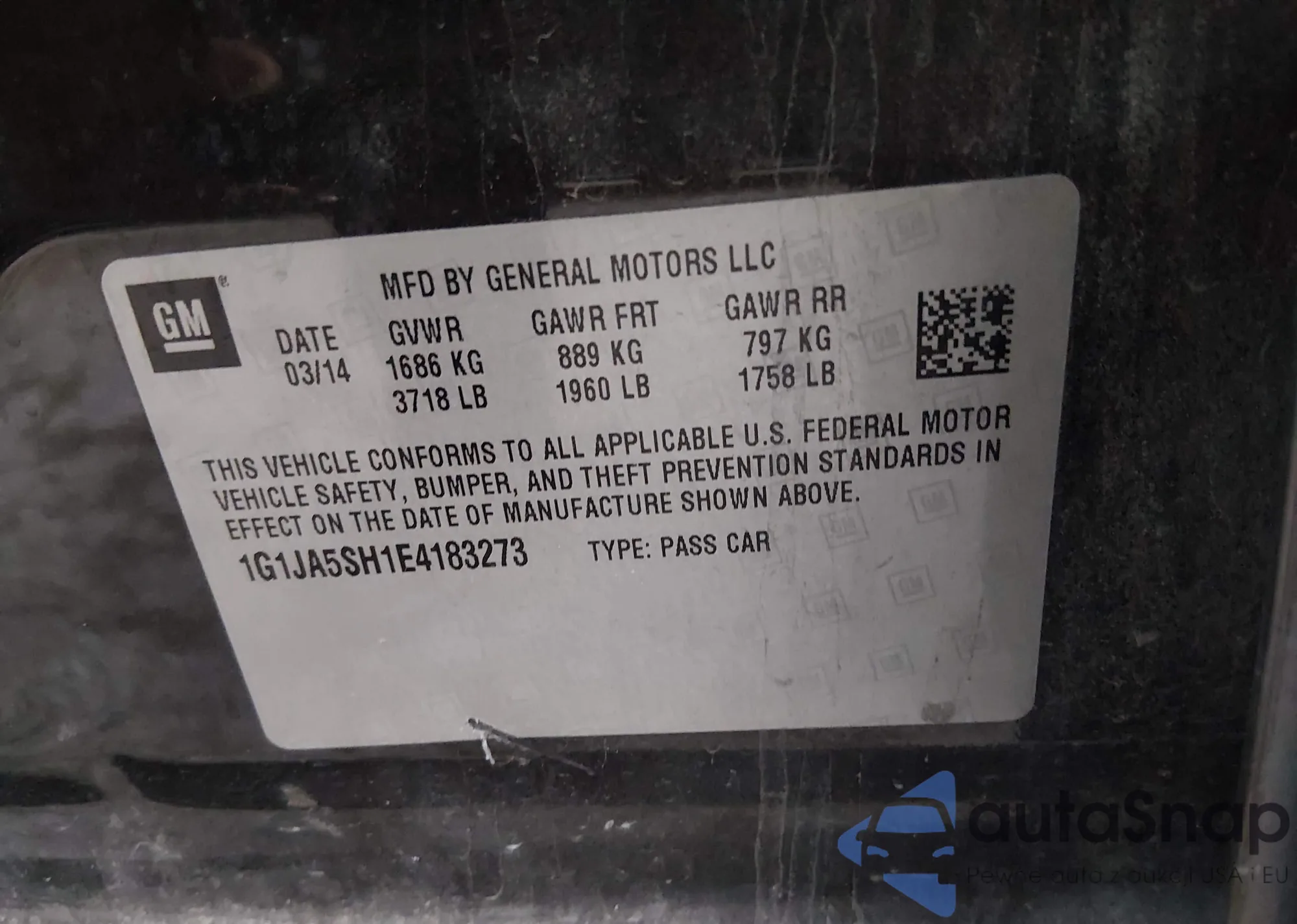 • VIN 1G1JA5SH1E4183273