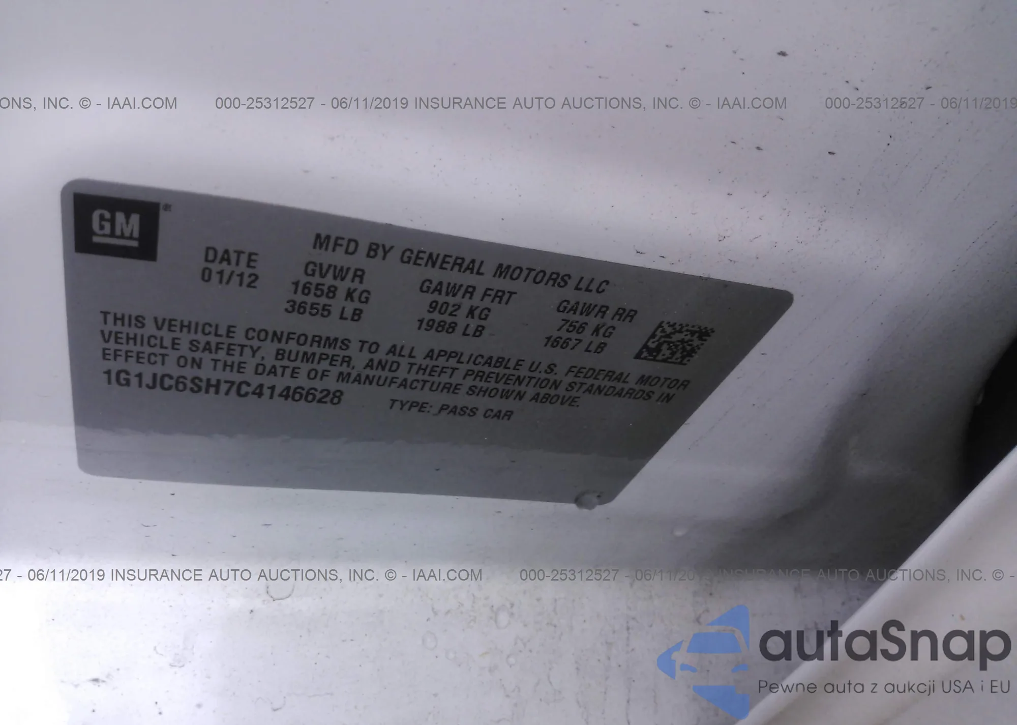 LOT: 25312527 VIN: 1G1JC6SH7C4146628