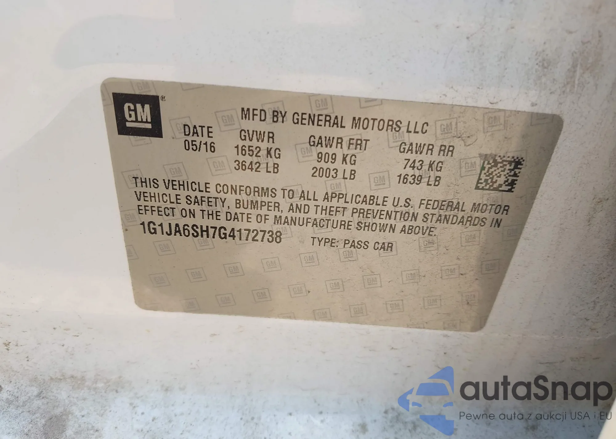 LOT: 43110487 VIN: 1G1JA6SH7G4172738