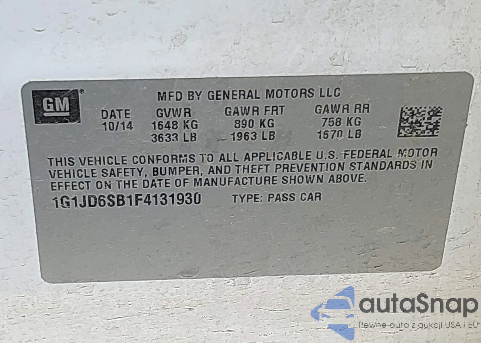 • VIN 1G1JD6SB1F4131930