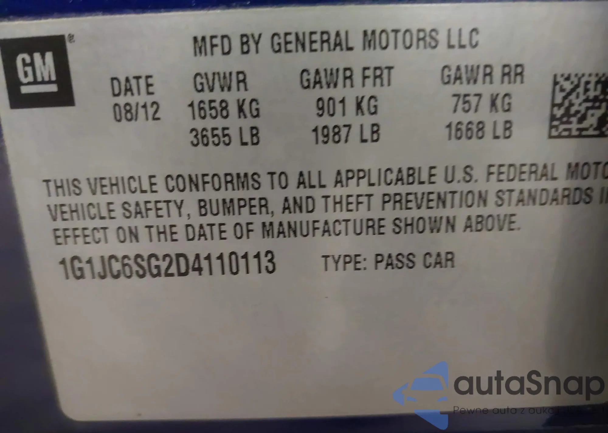 • VIN 1G1JC6SG2D4110113