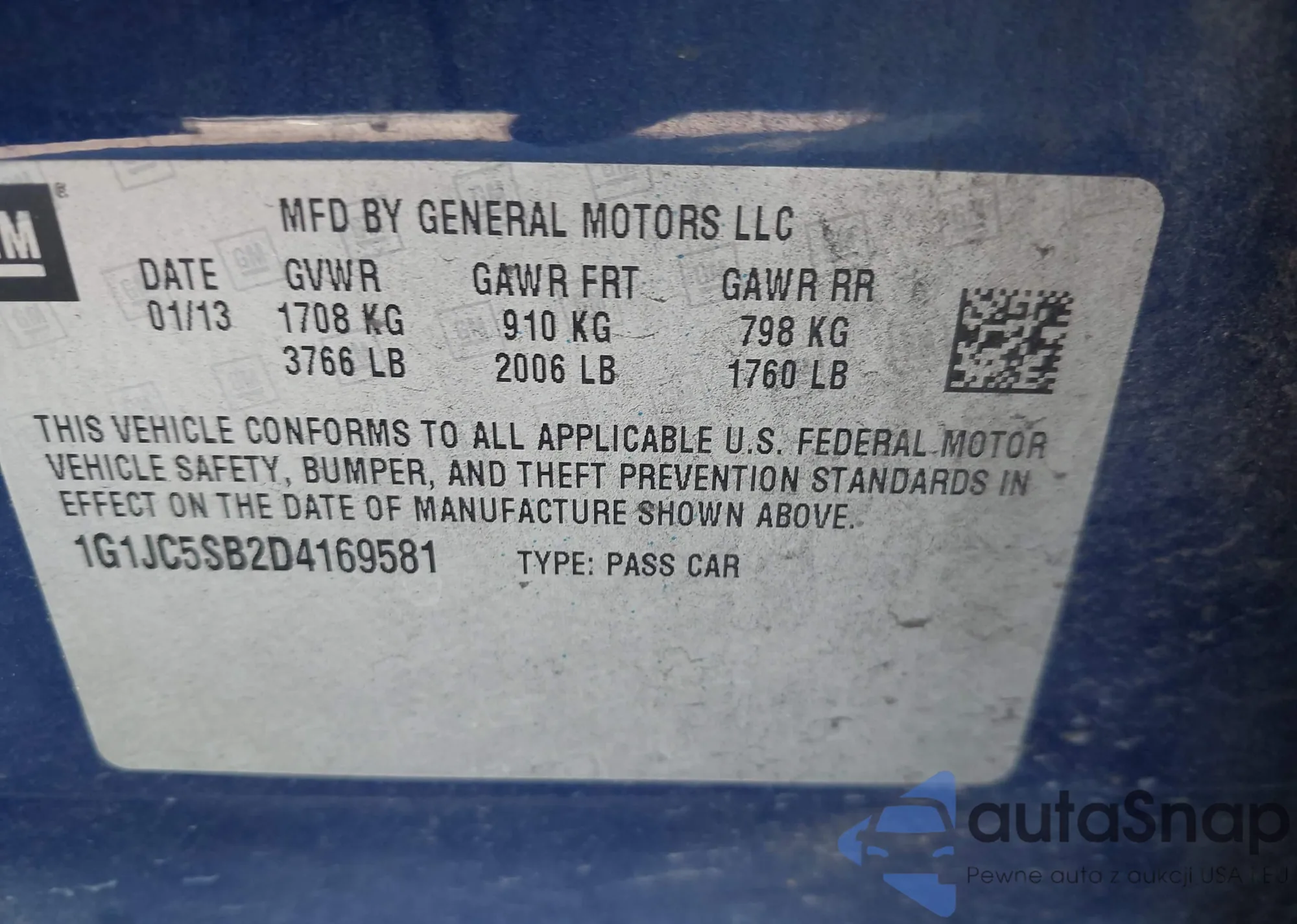 LOT: 43368225 VIN: 1G1JC5SB2D4169581