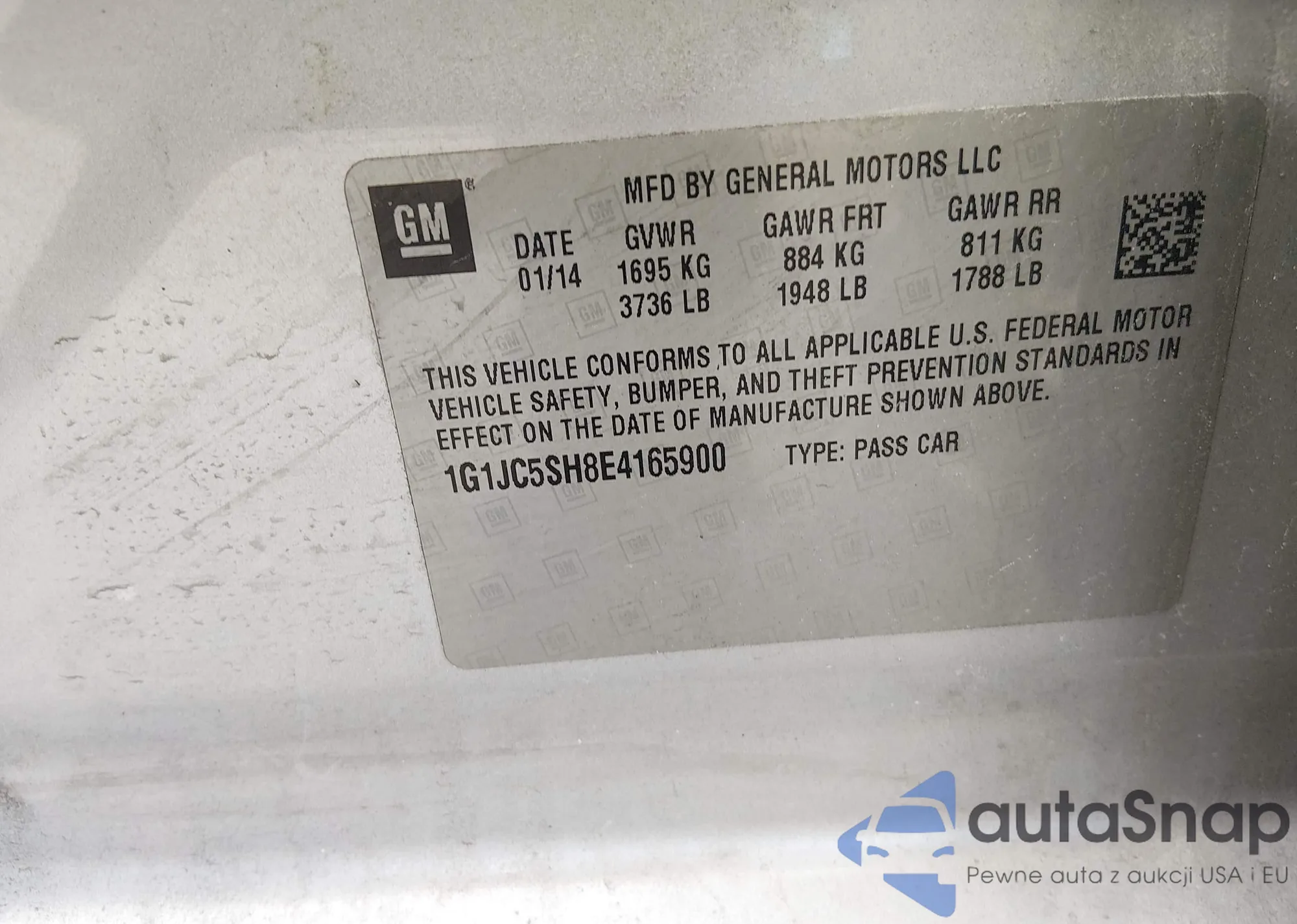 • VIN 1G1JC5SH8E4165900