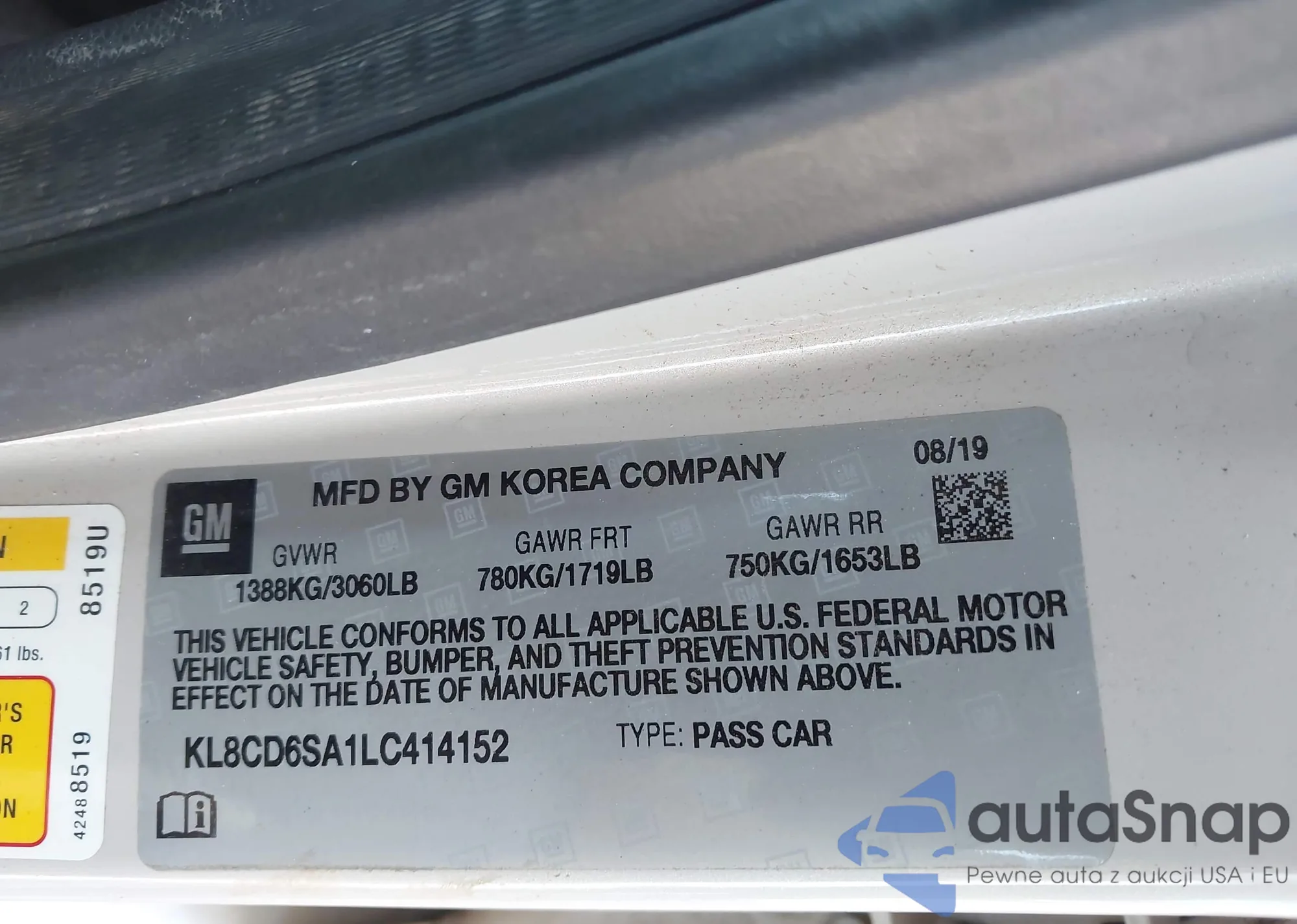 • VIN KL8CB6SA6LC463594