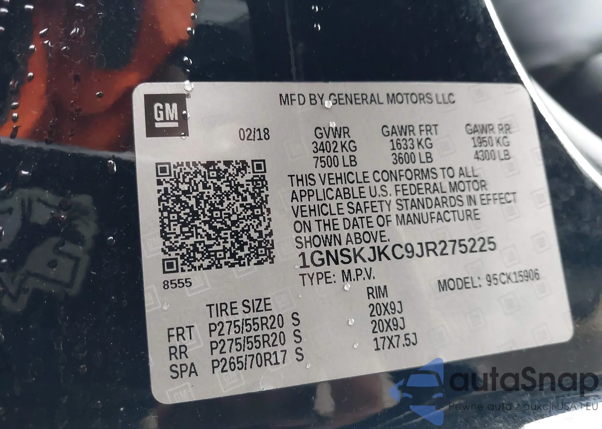 LOT: 95183725 VIN: 1GNSKJKC8JR173284
