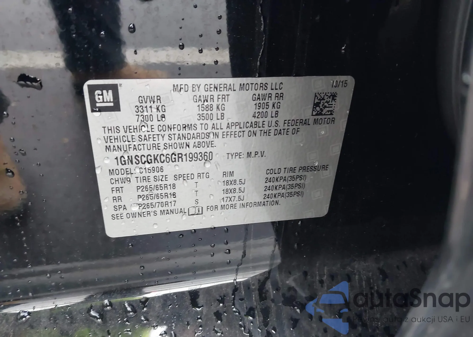 LOT: 43797393 VIN: 1GNSCGKC6GR199360