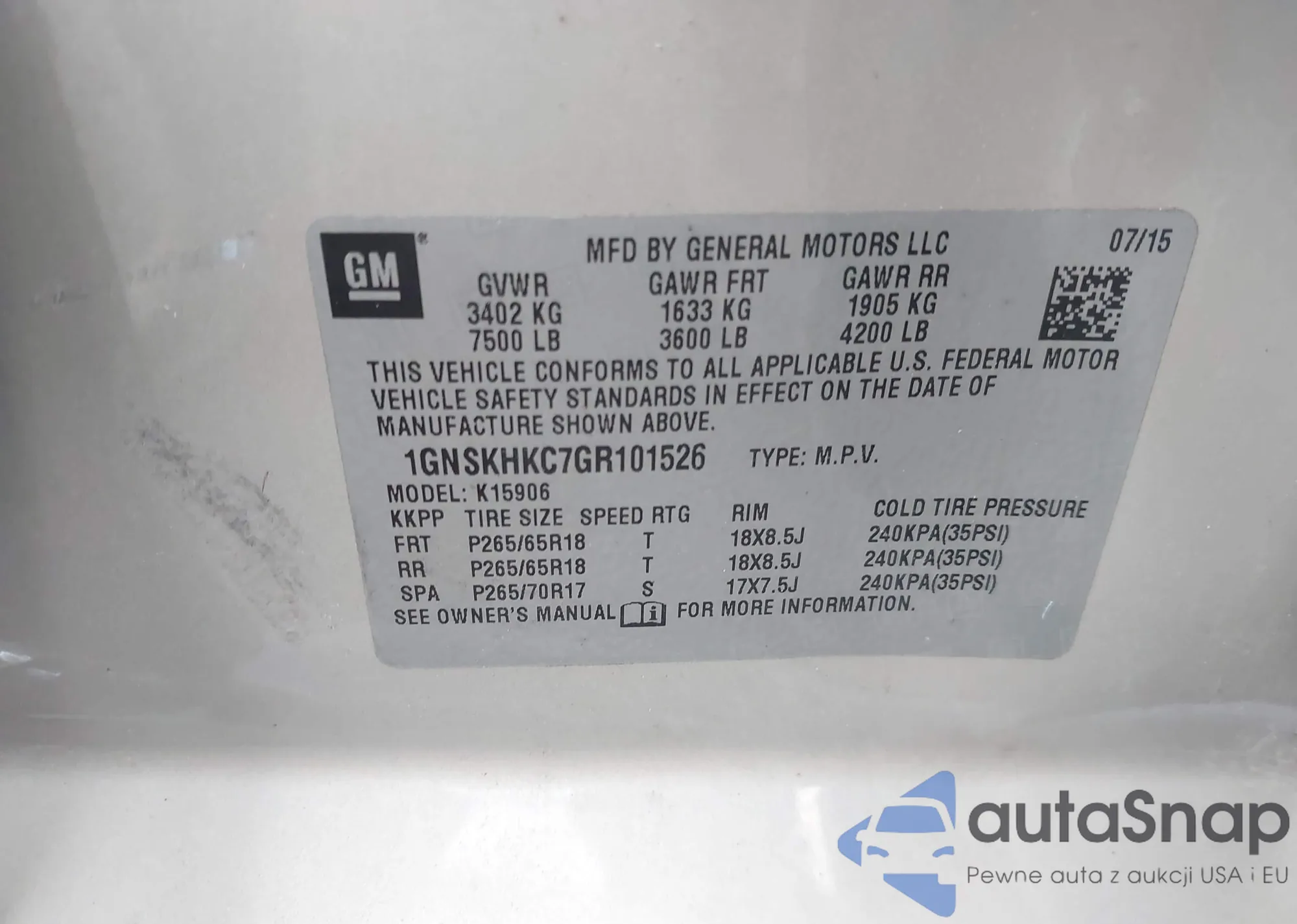 LOT: 44316872 VIN: 1GNSKHKC7GR101526
