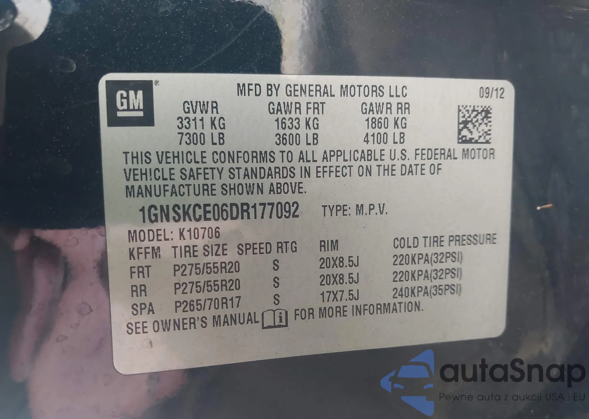 • VIN 1GNSKCE06DR177092