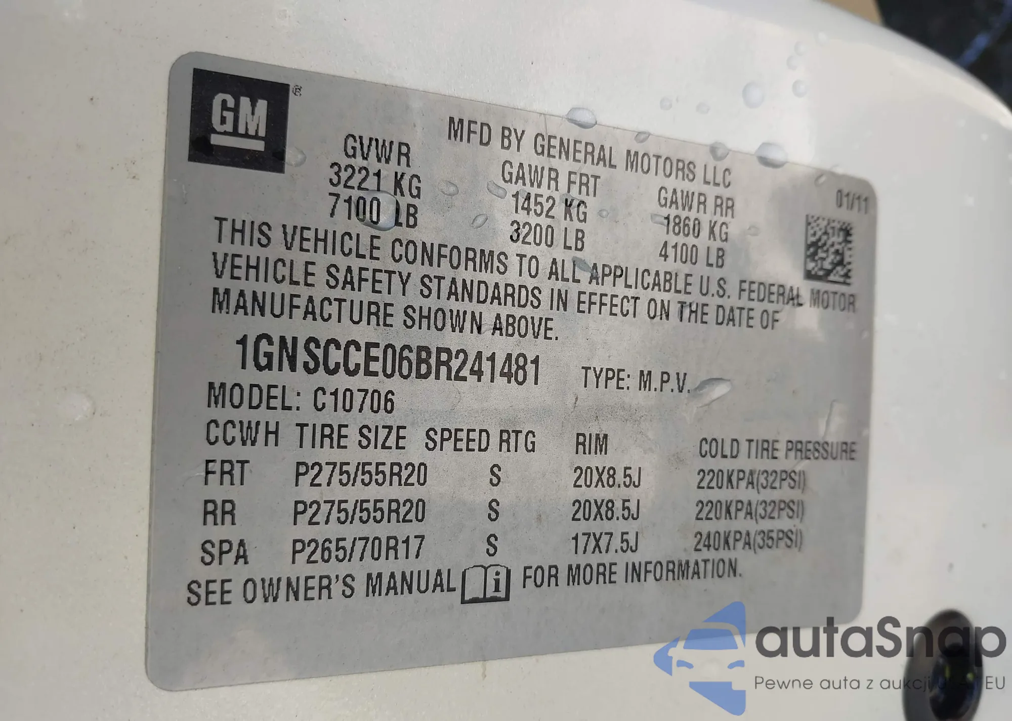 LOT: 42395502 VIN: 1GNSCCE06BR241481