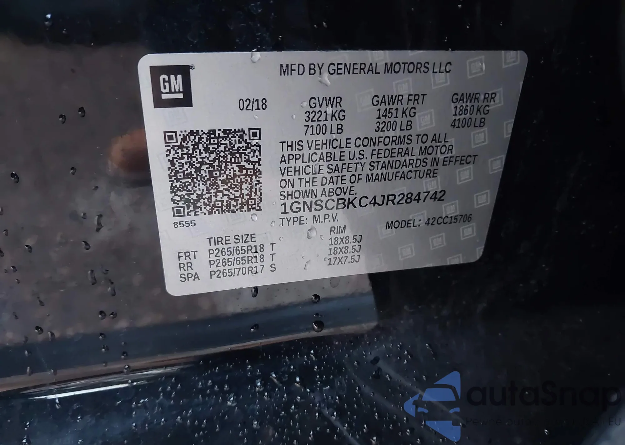 LOT: 43876635 VIN: 1GNSKBKC7JR384370