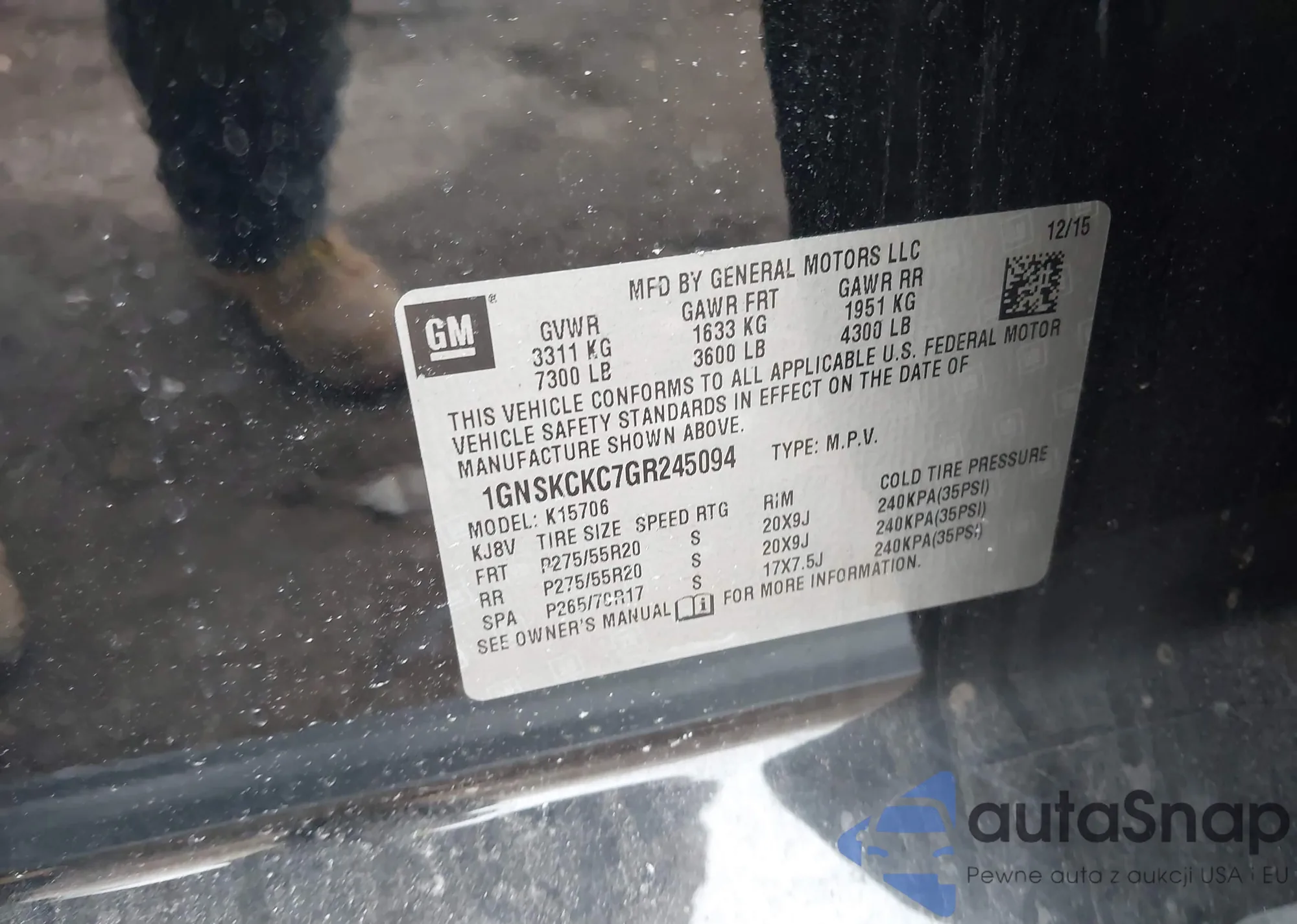 LOT: 44323074 VIN: 1GNSKCKC7GR245094