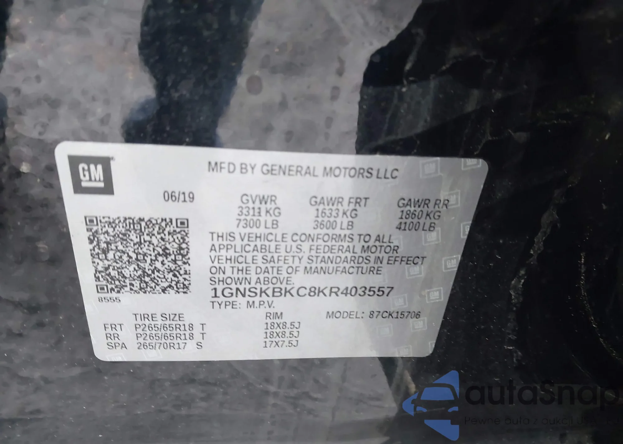 • VIN 1GNSKBKC8KR403557