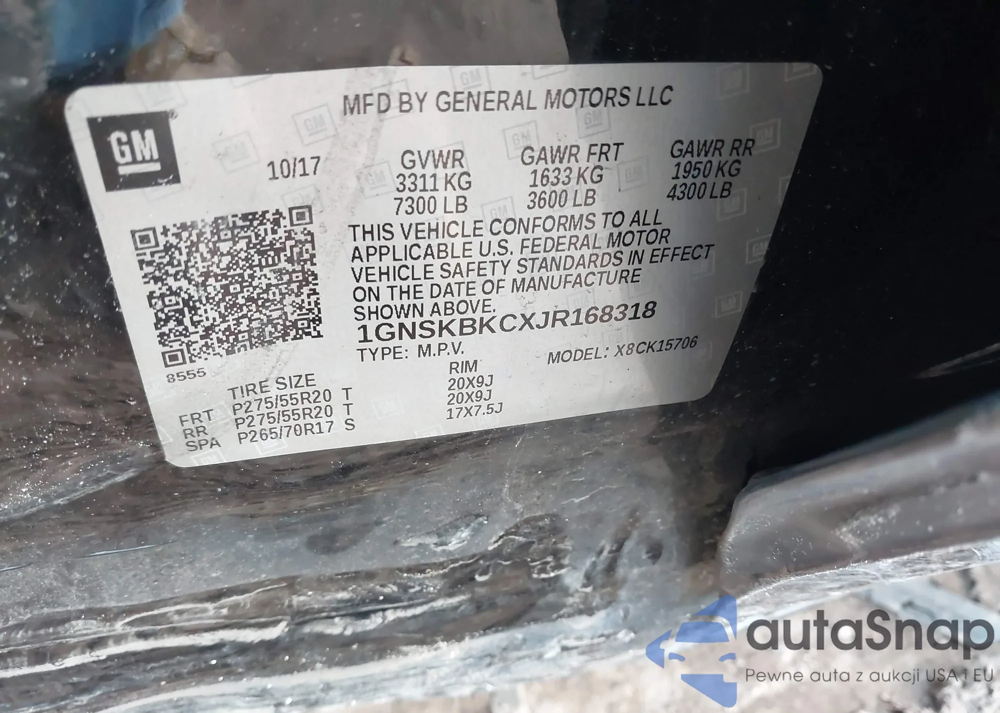 LOT: 44419363 VIN: 1GNSKBKCXJR168318