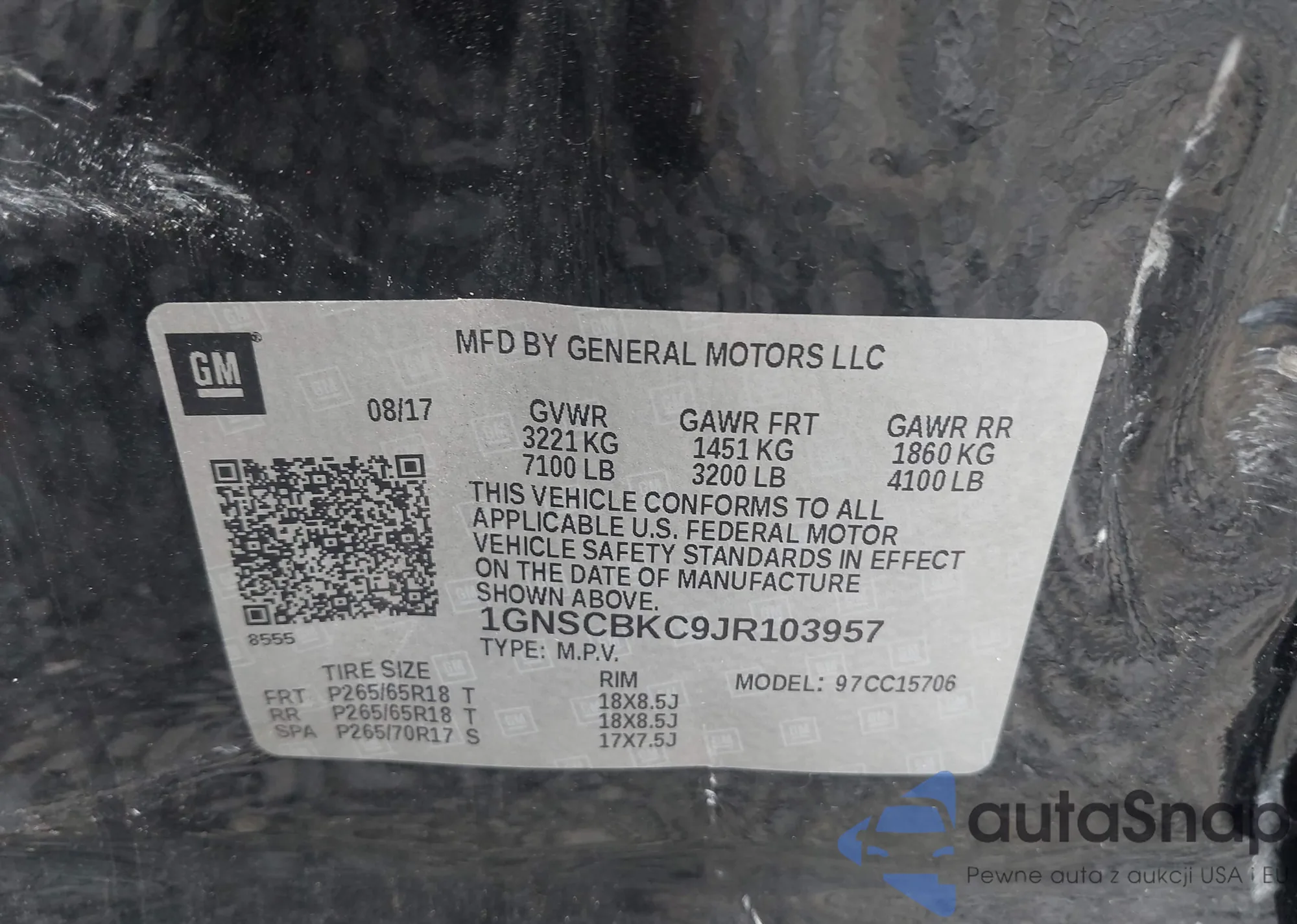 • VIN 1GNSCBKC9JR103957