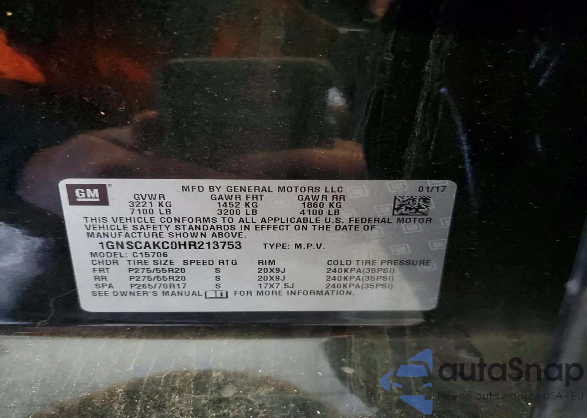 • VIN 1GNSCAKC0HR213753
