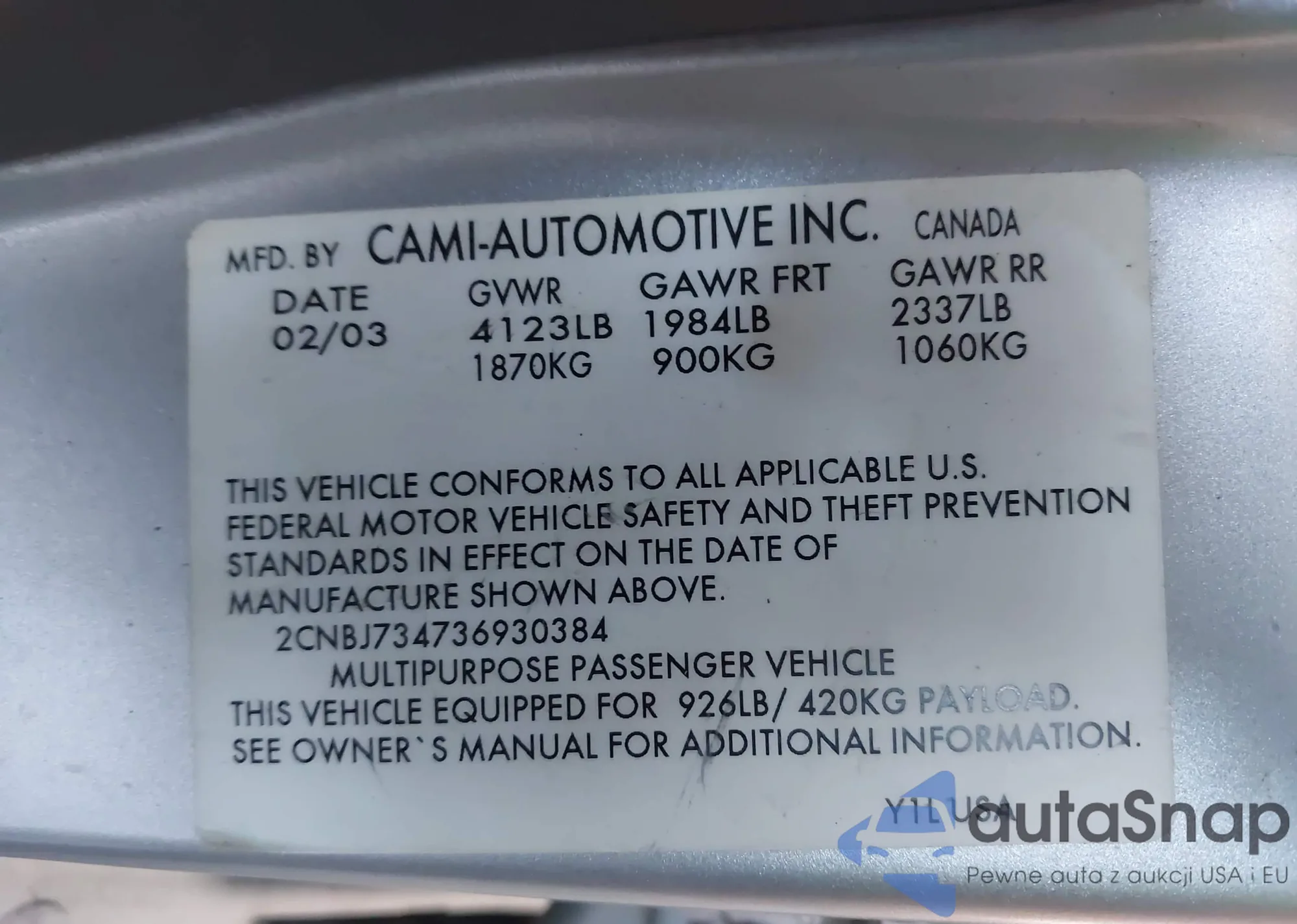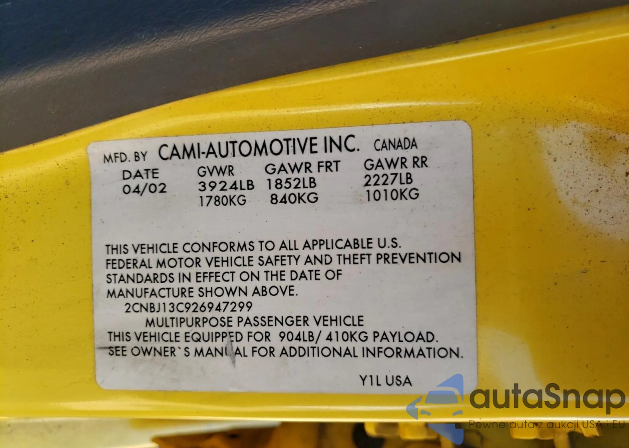 • VIN 2CNBJ13C926947299