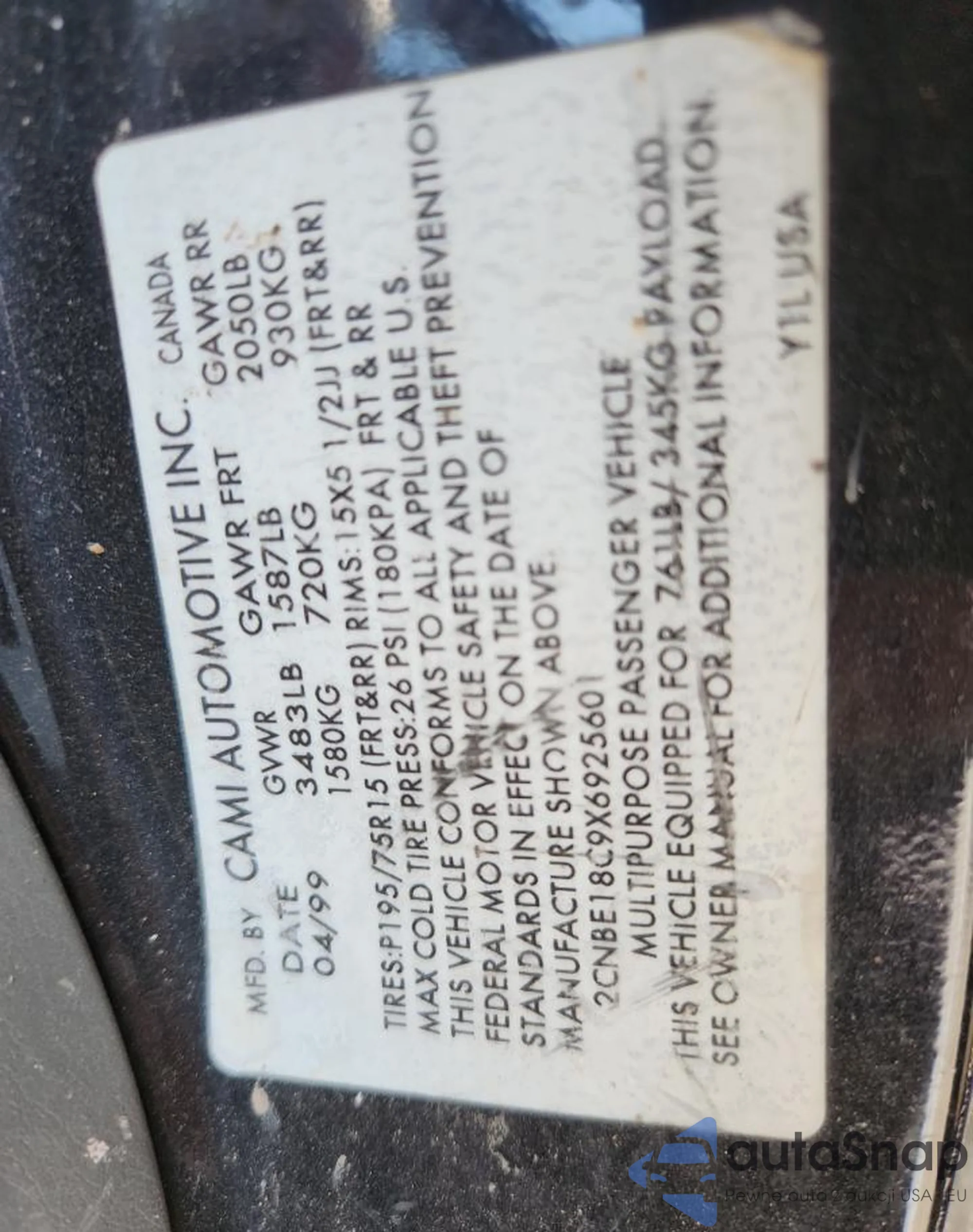 • VIN 2CNBE18C9X6925601