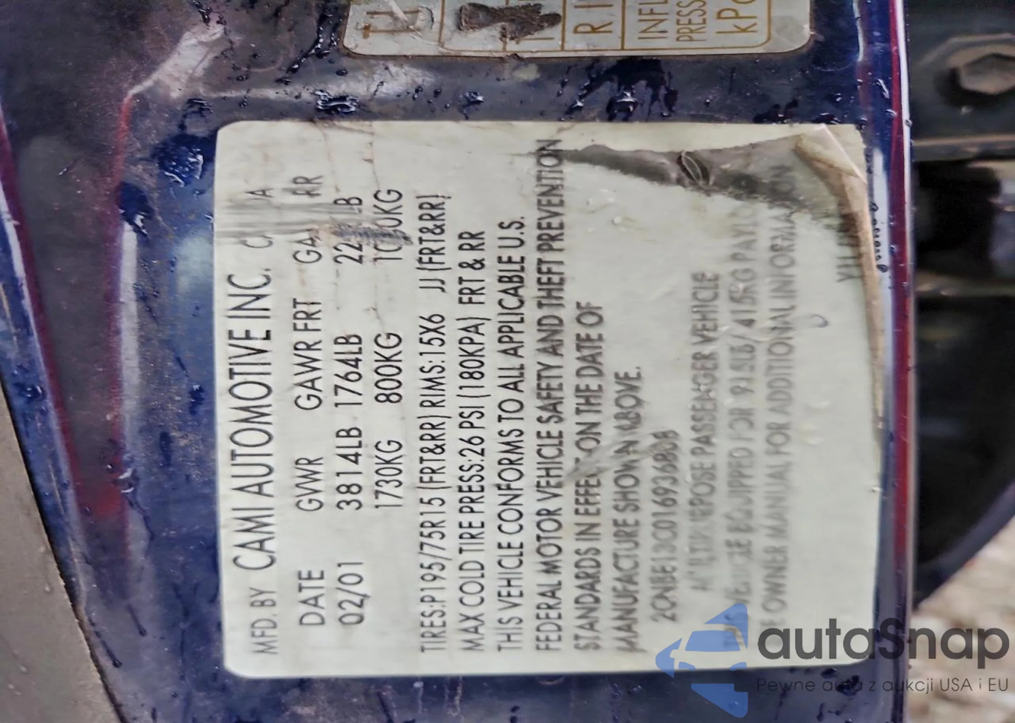 2001 Chevrolet Tracker z USA, uszkodzony, nr VIN 2CNBE13C016936808