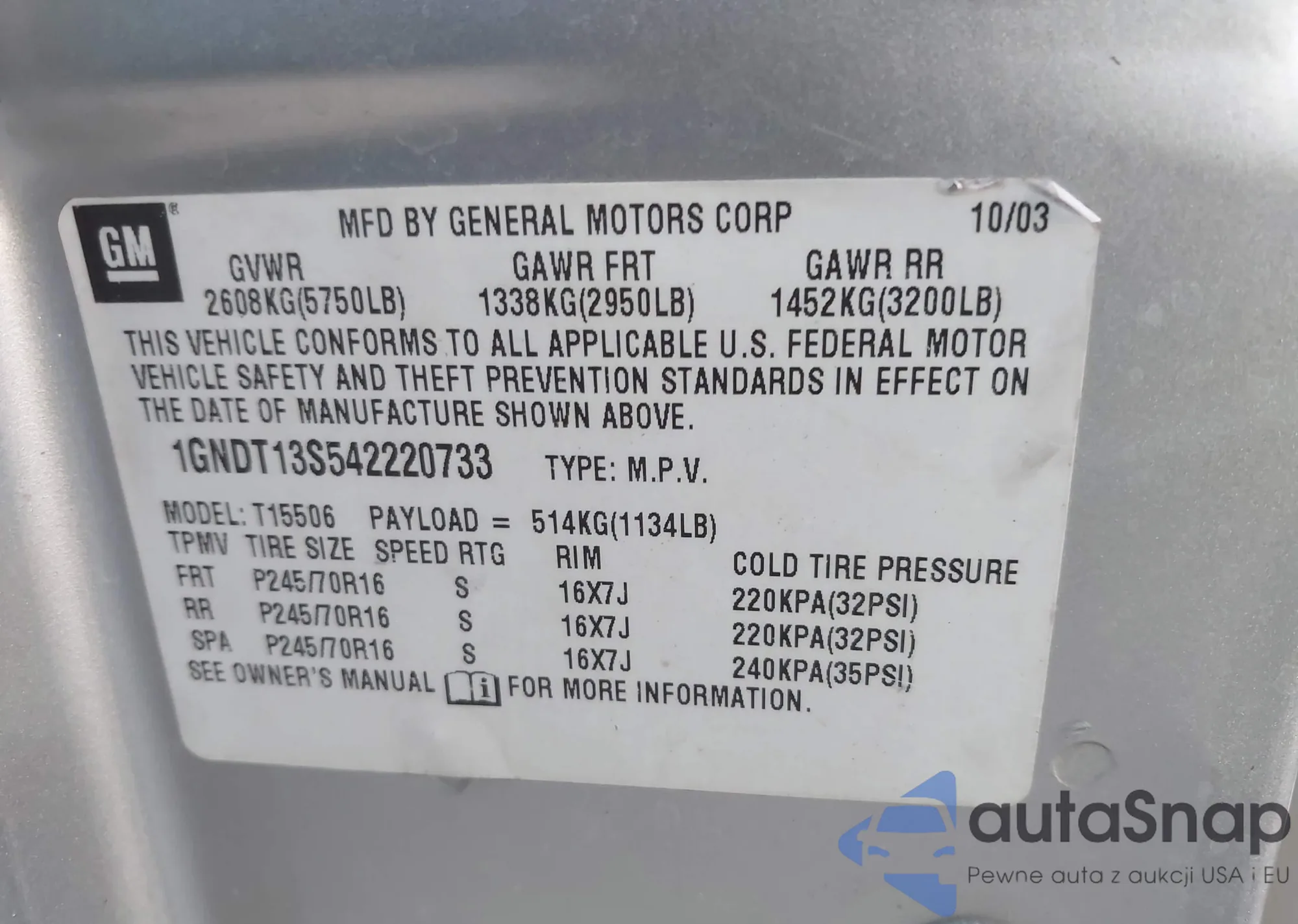 LOT: 44017117 VIN: 1GNDT13S542220733
