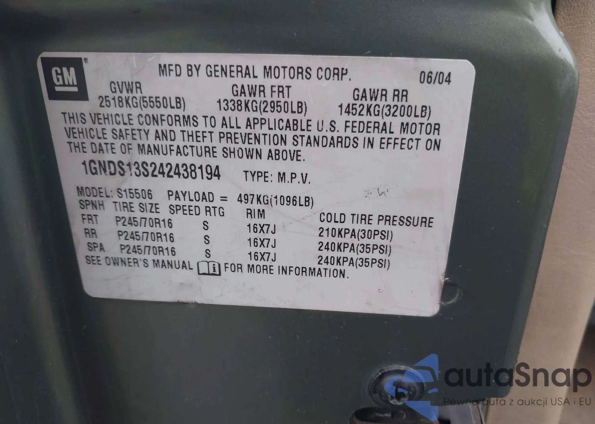 LOT: 44194953 VIN: 1GNDS13S242438194