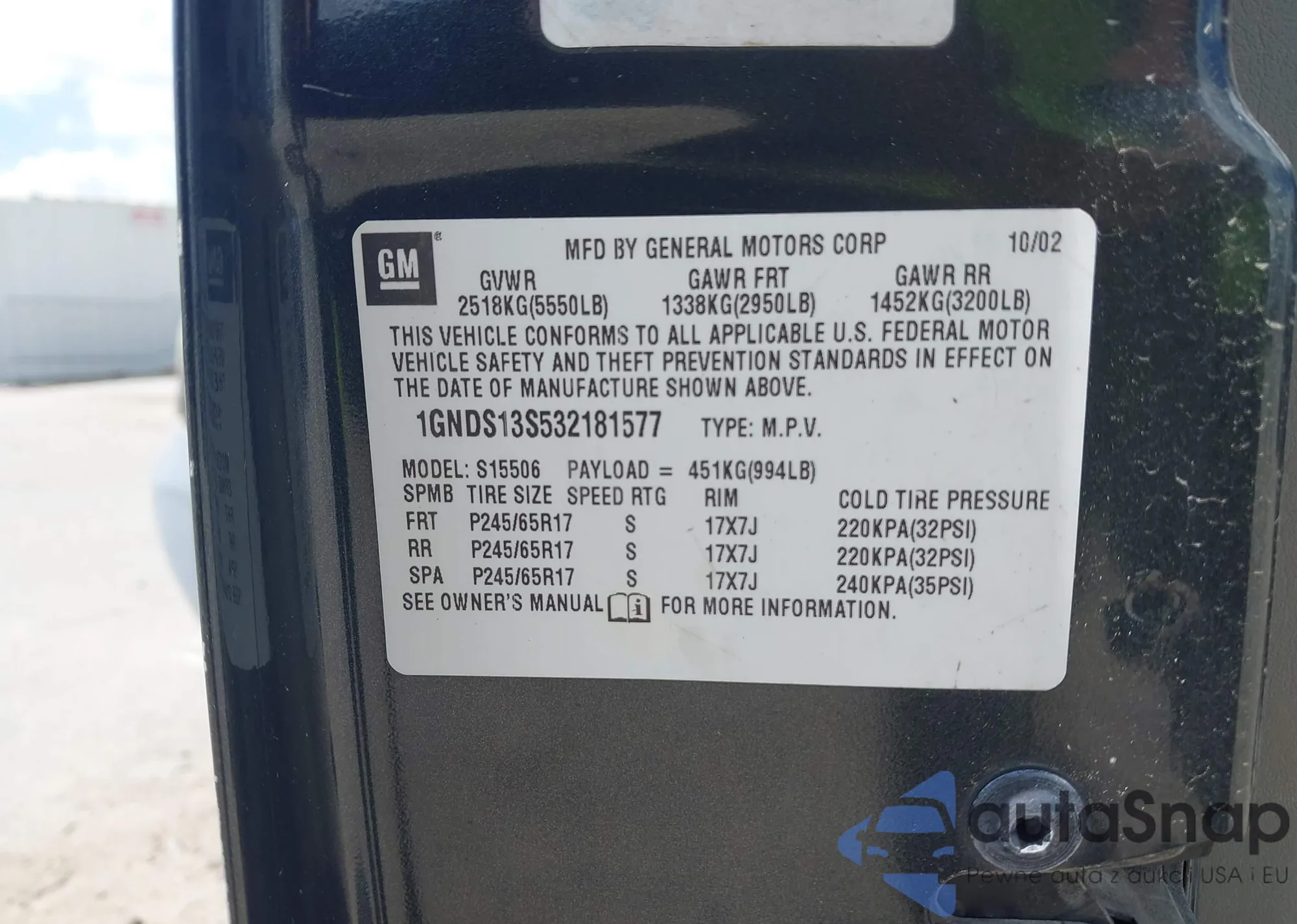 • VIN 1GNDS13S532181577