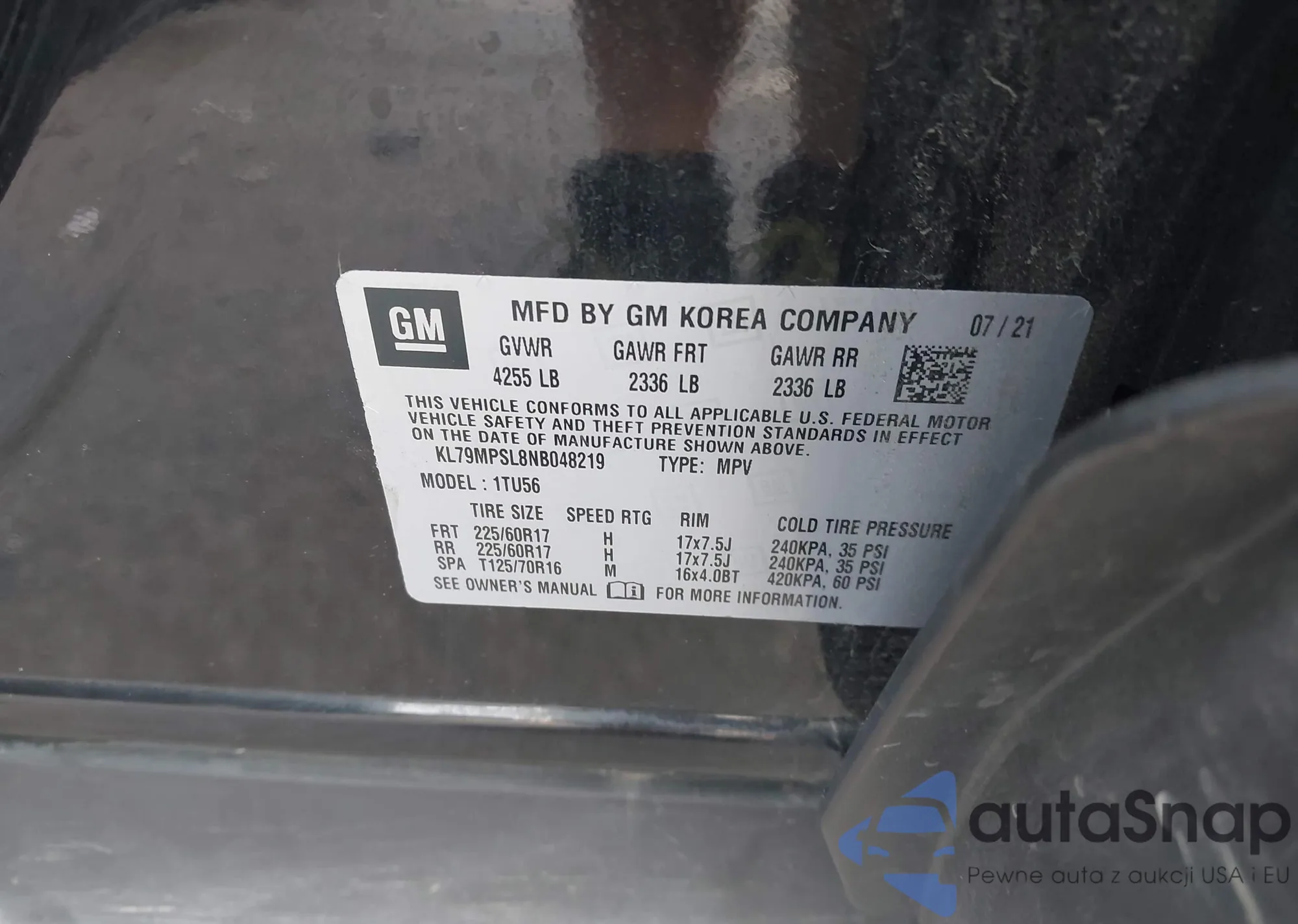 • VIN KL79MPSL8NB048219