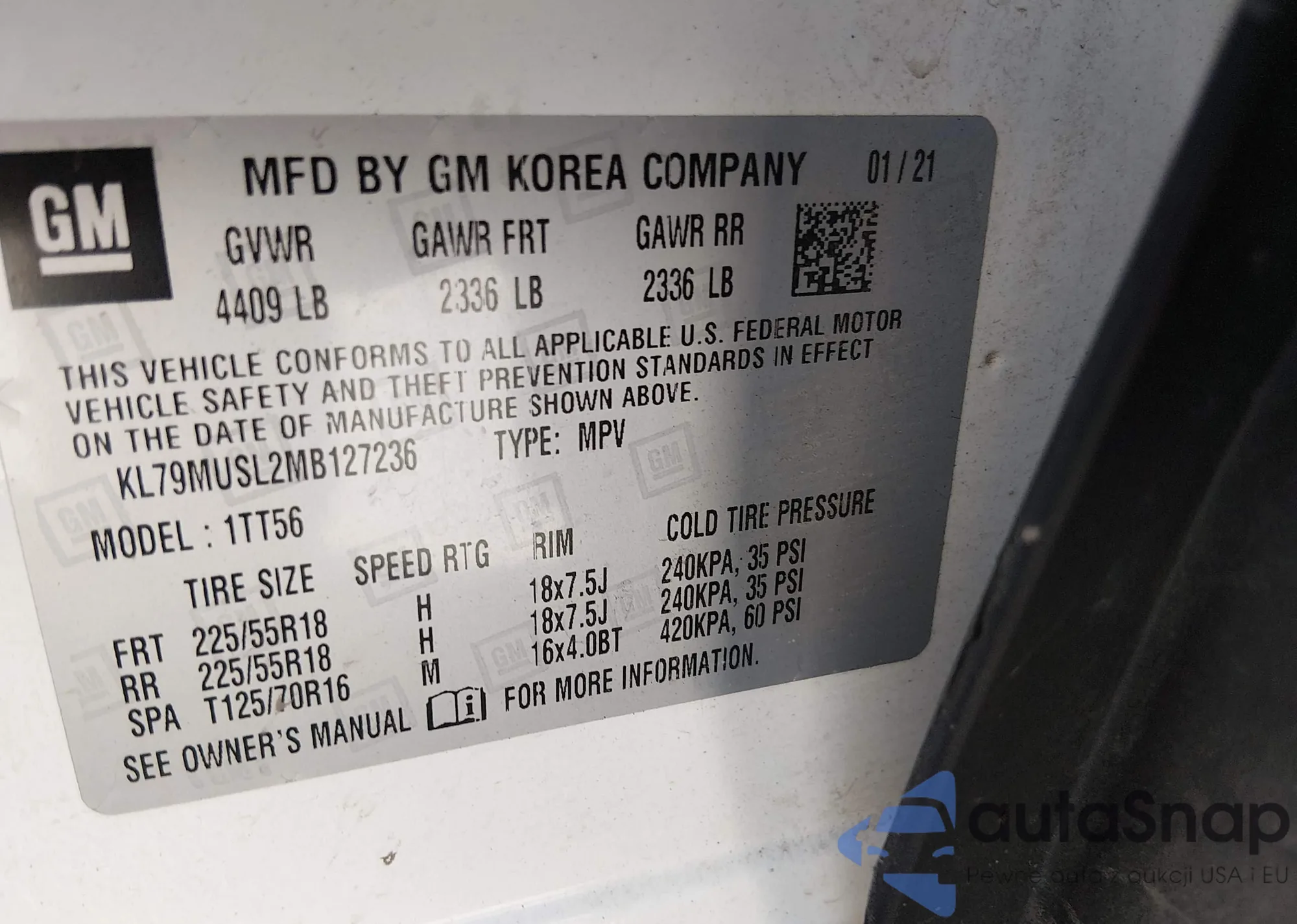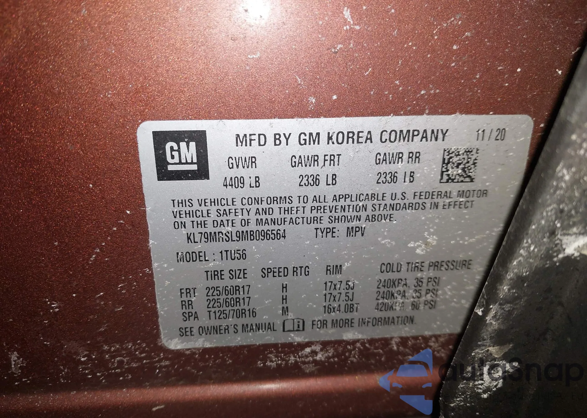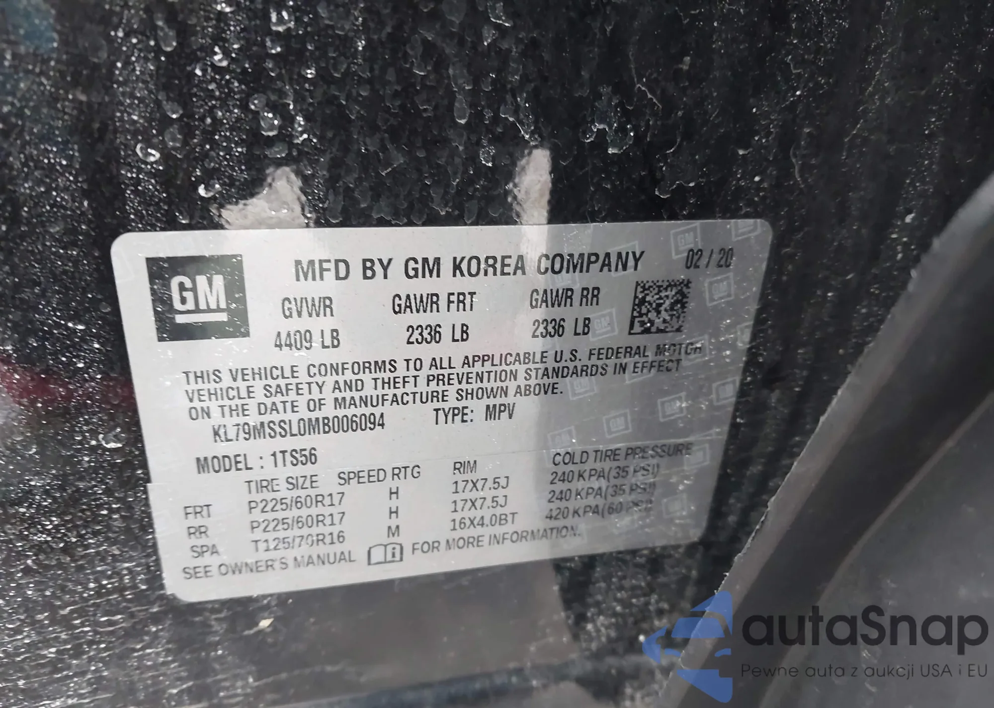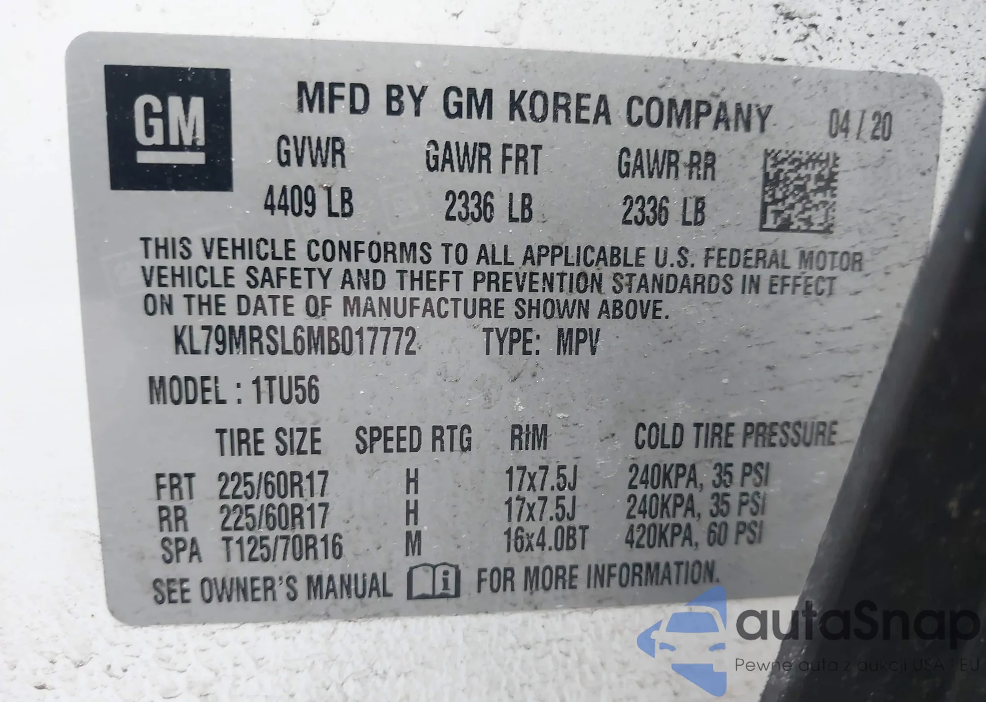 • VIN KL79MRSL6MB017772