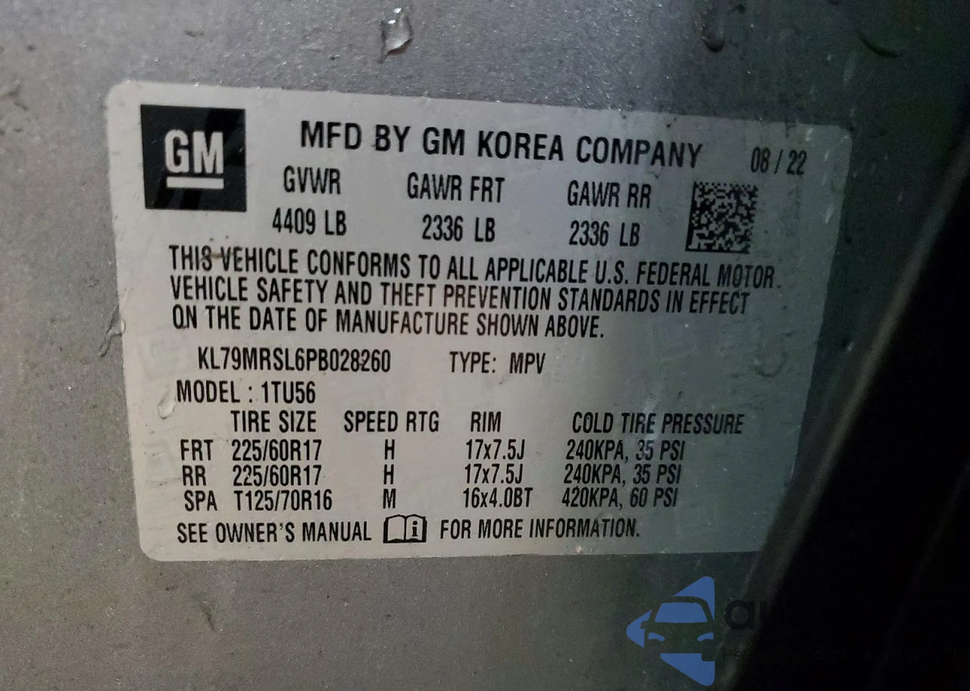 • VIN KL79MPSL2NB053318