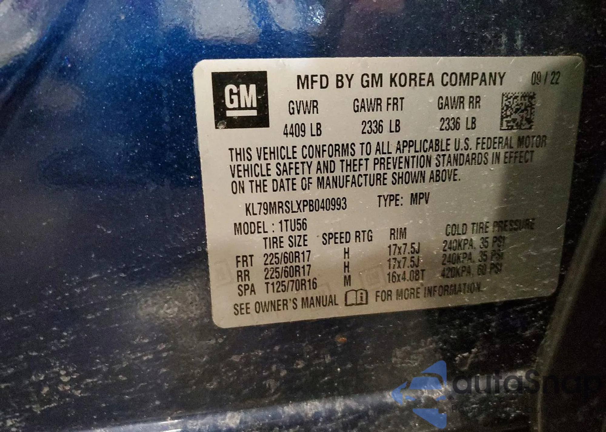 • VIN KL79MRSLXPB040993