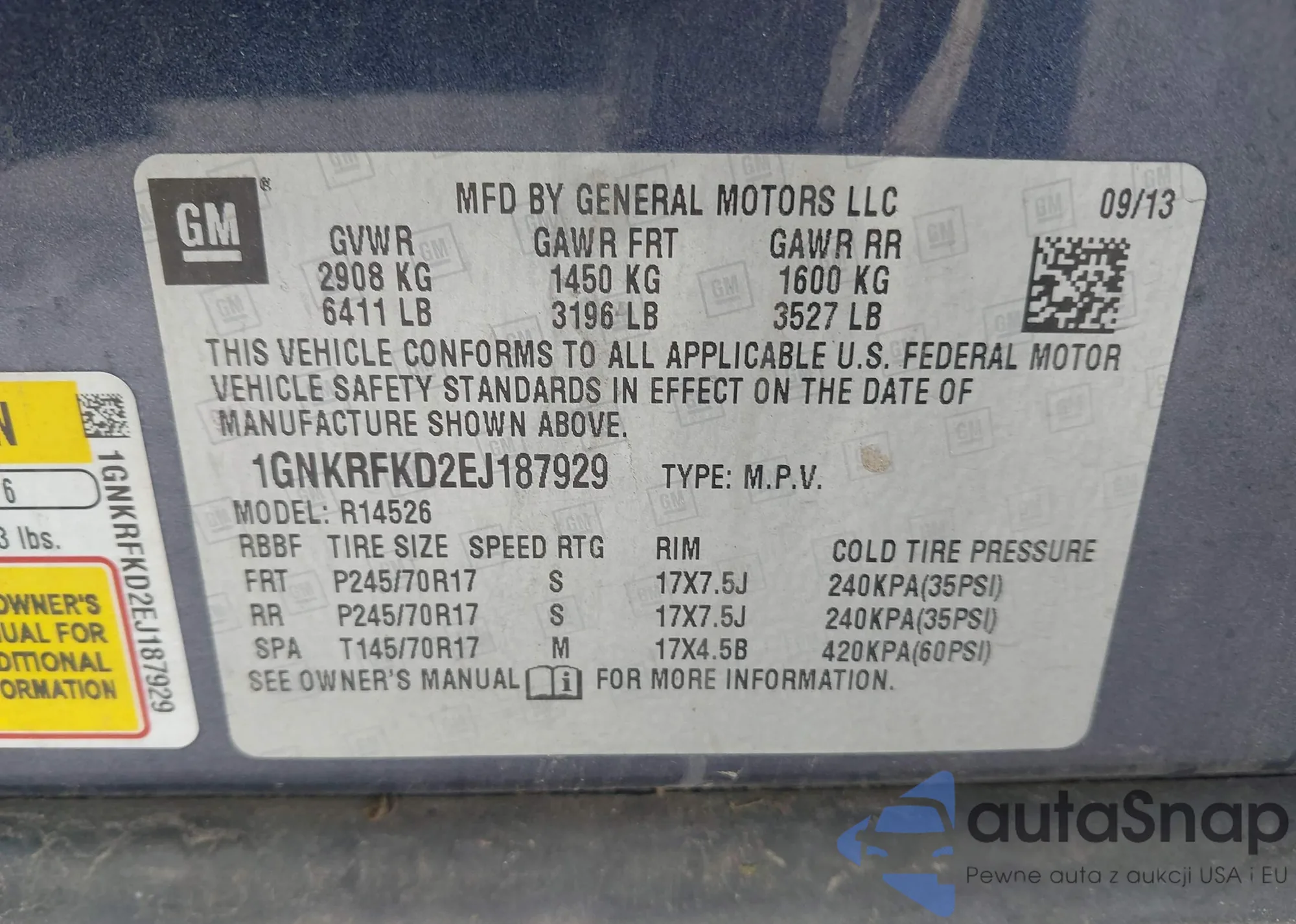 LOT: 42960973 VIN: 1GNKRFKD2EJ187929