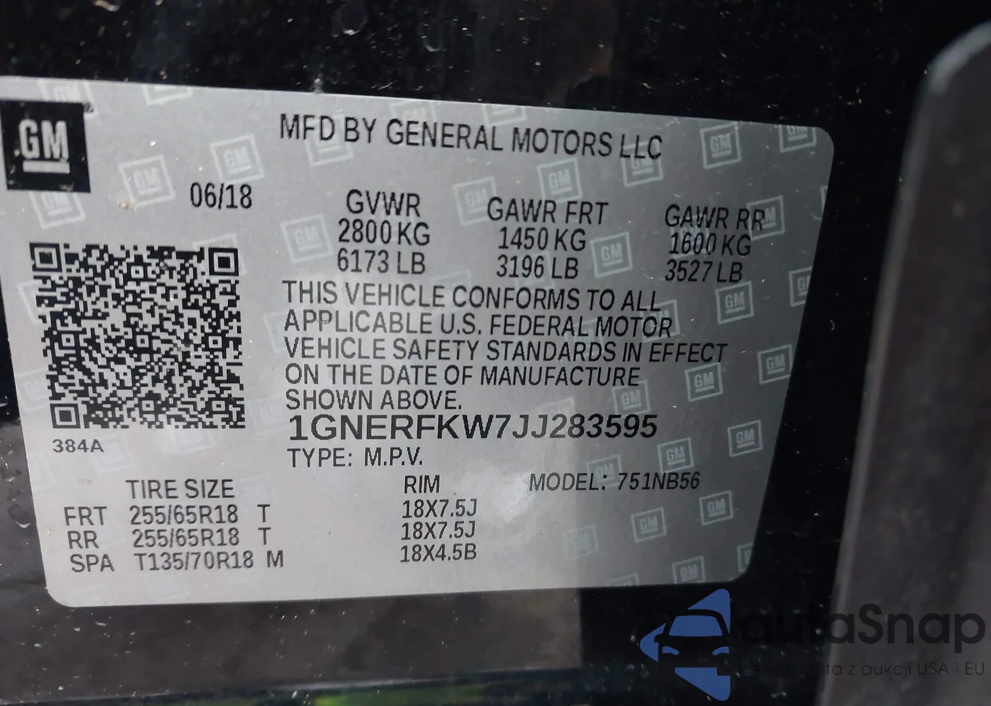 LOT: 46278176 VIN: 1GNEVGKW6JJ228038