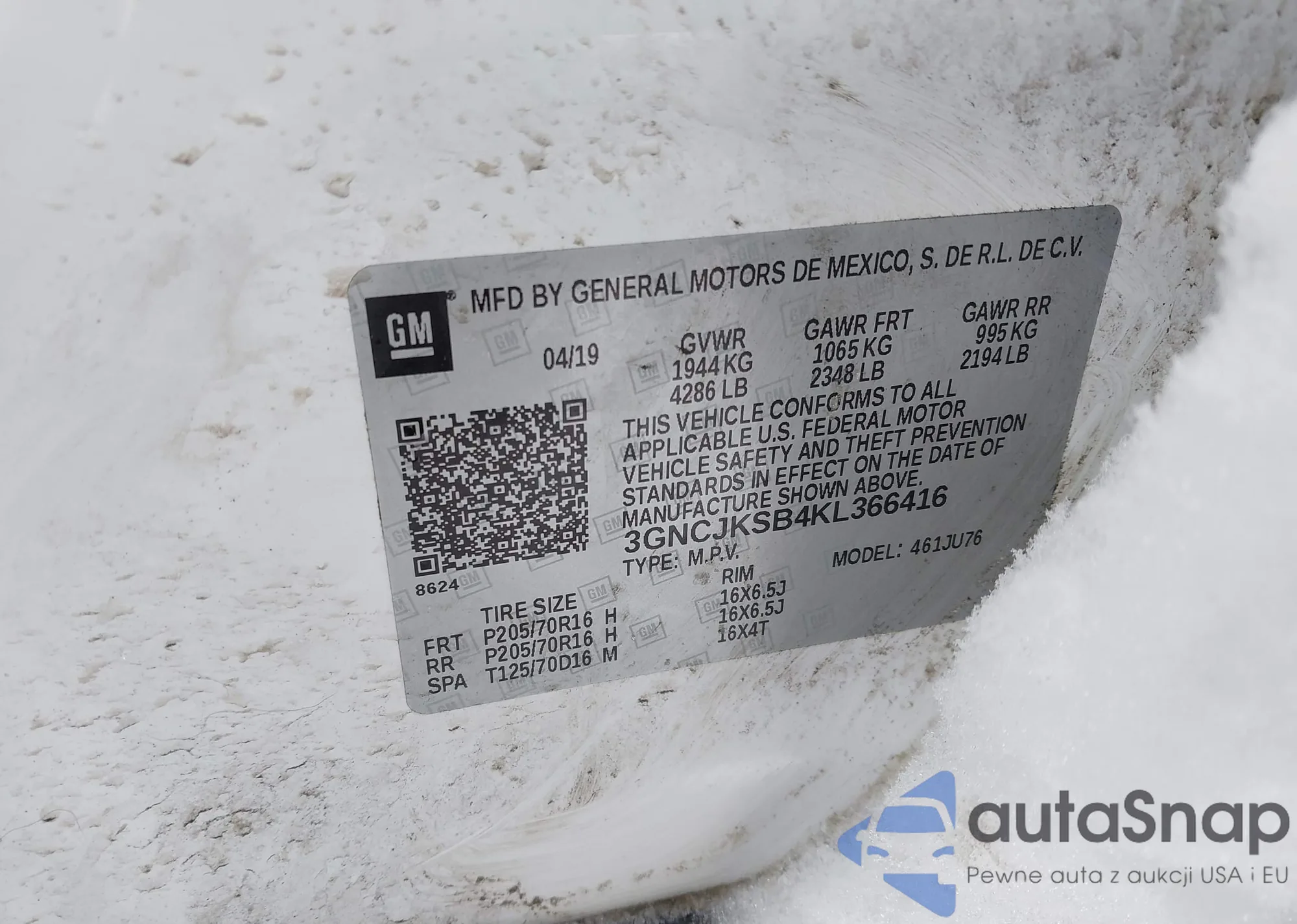 • VIN 3GNCJKSB4KL366416