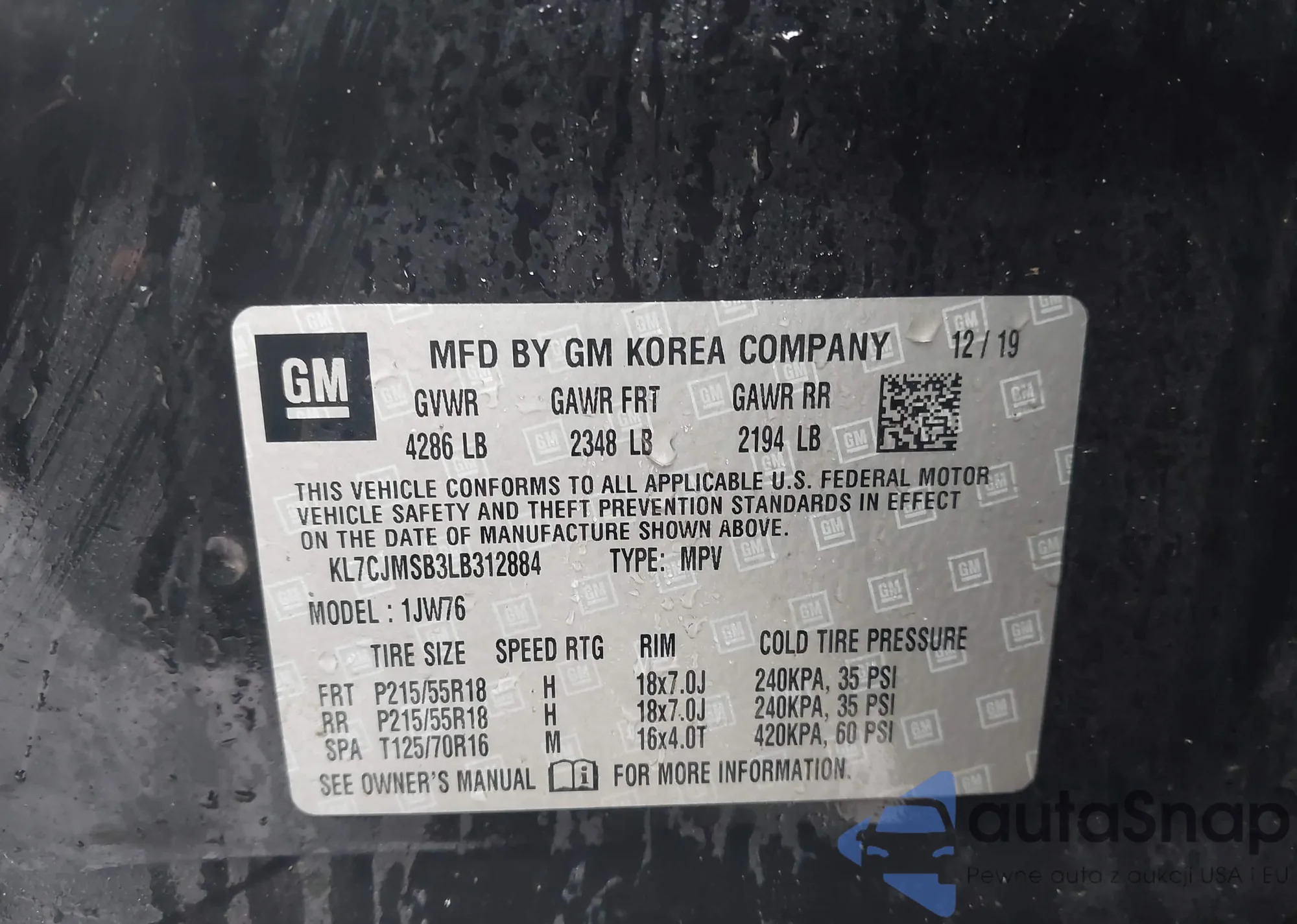 • VIN KL7CJMSB3LB312884